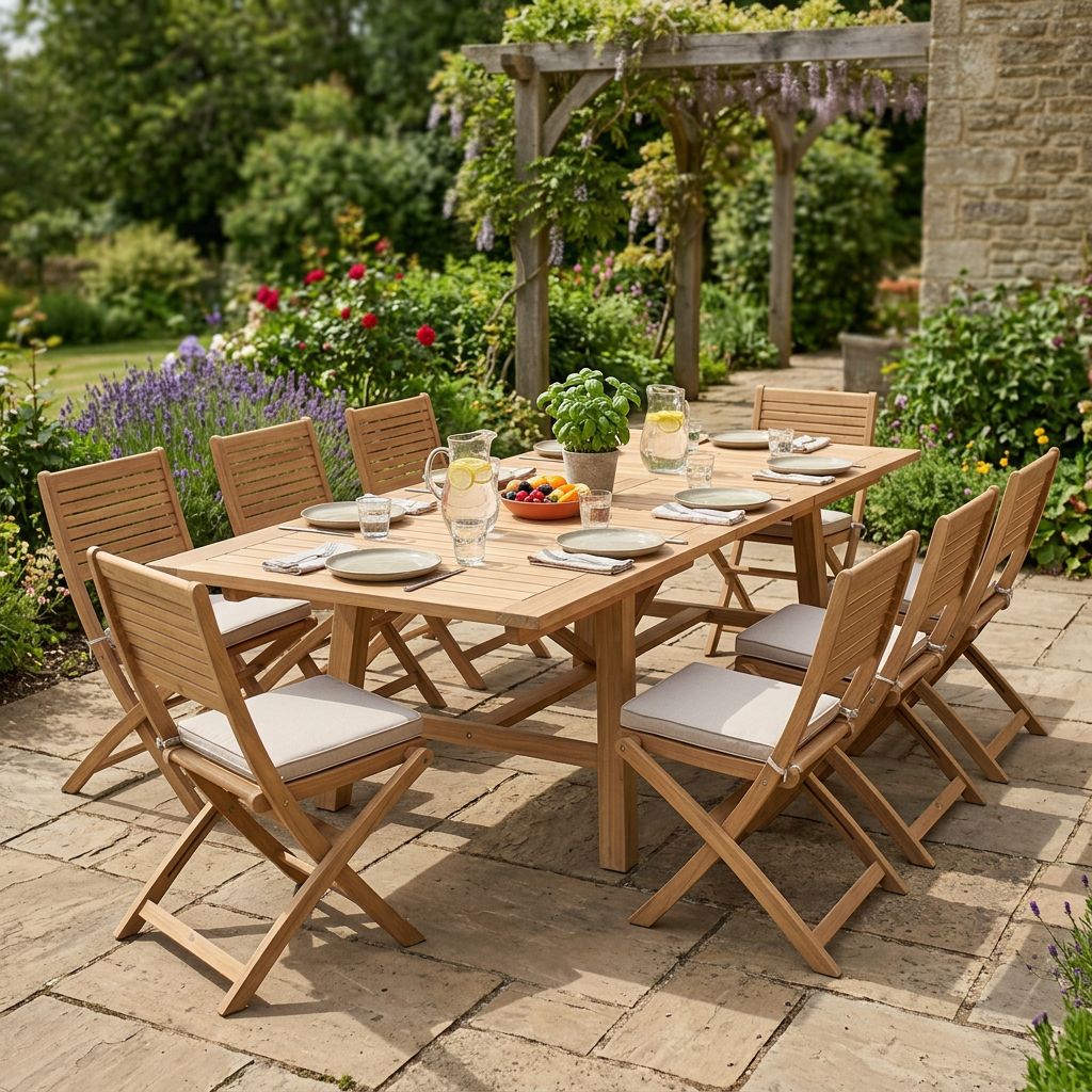 • Il set è realizzato in legno di teak, legno apprezzato per le sue caratteristiche di resistenza alle intemperie.