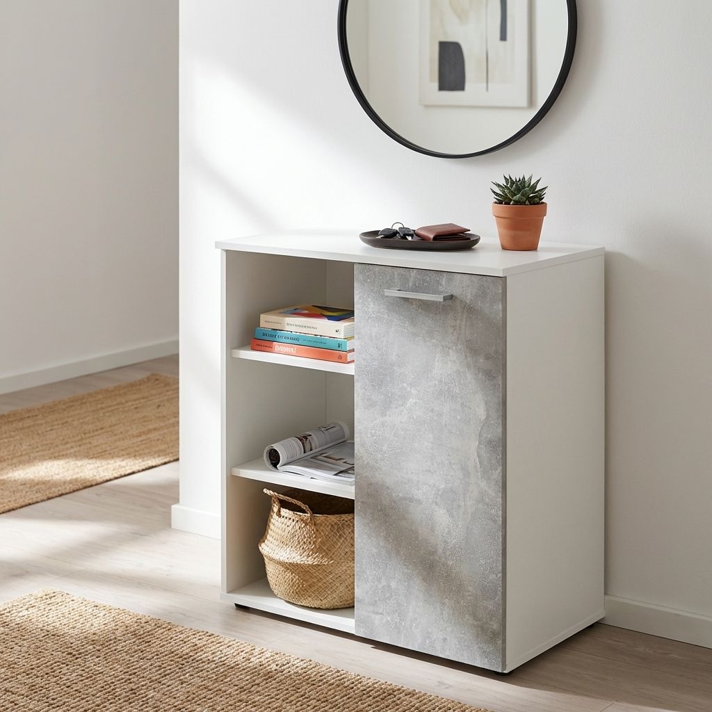 OREGON è un mobile ingresso disponibile in colore bianco, cemento e marrone