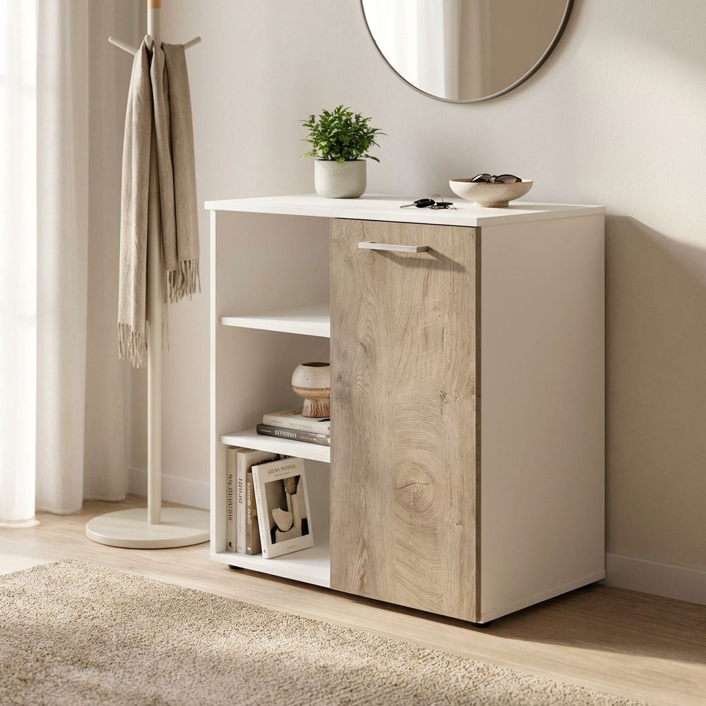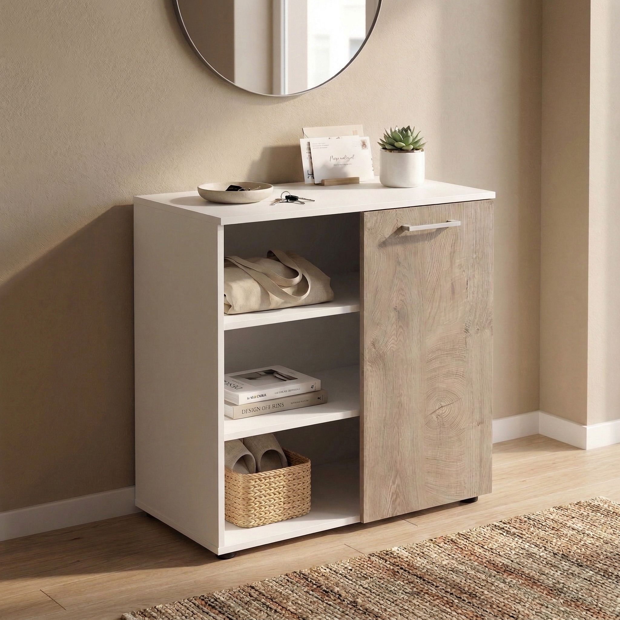 OREGON è un mobile ingresso disponibile in colore bianco, cemento e marrone