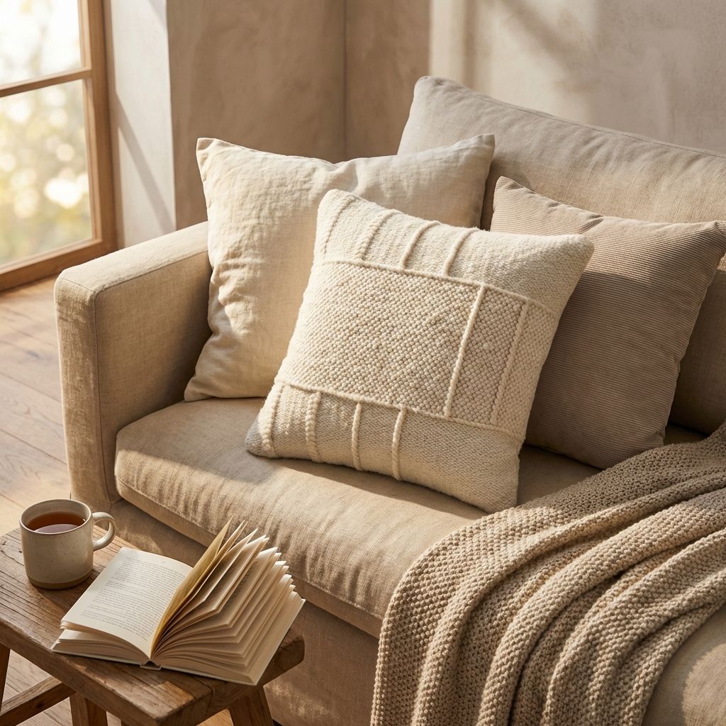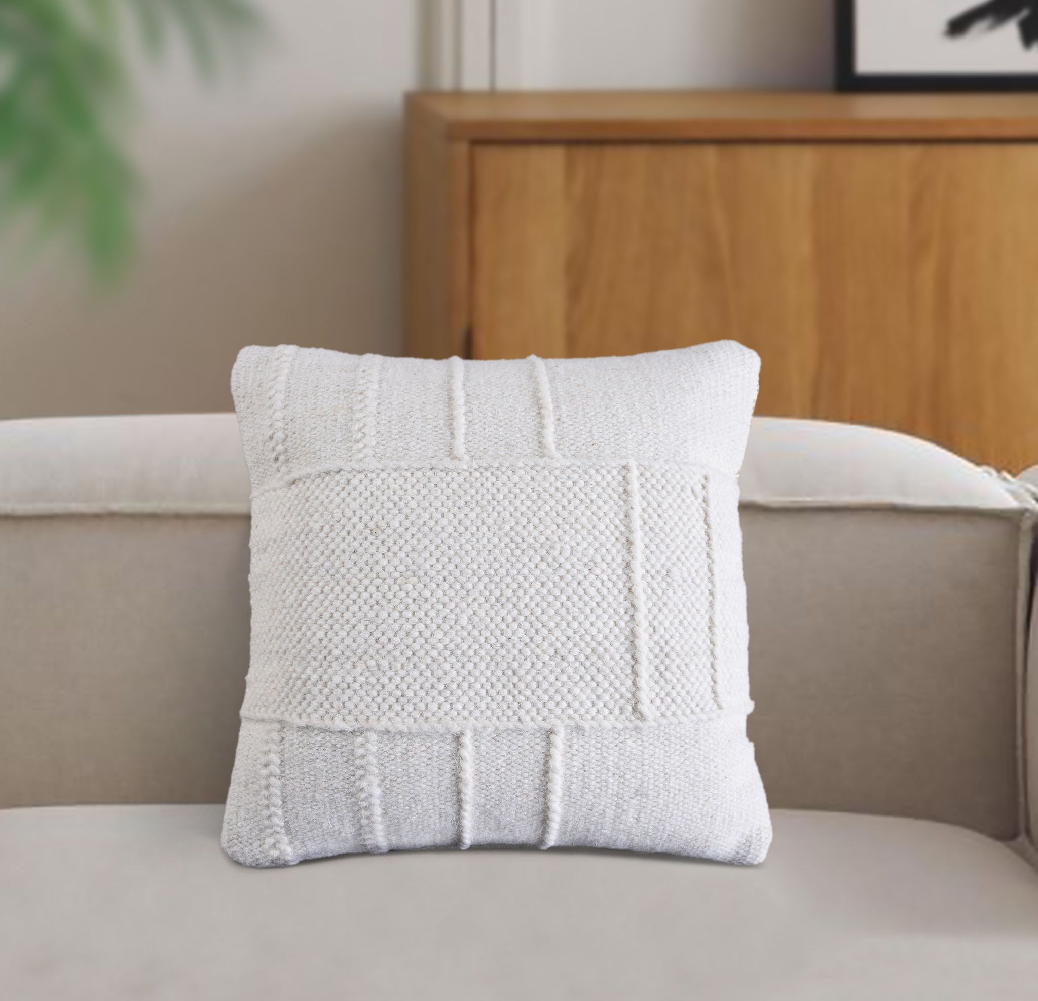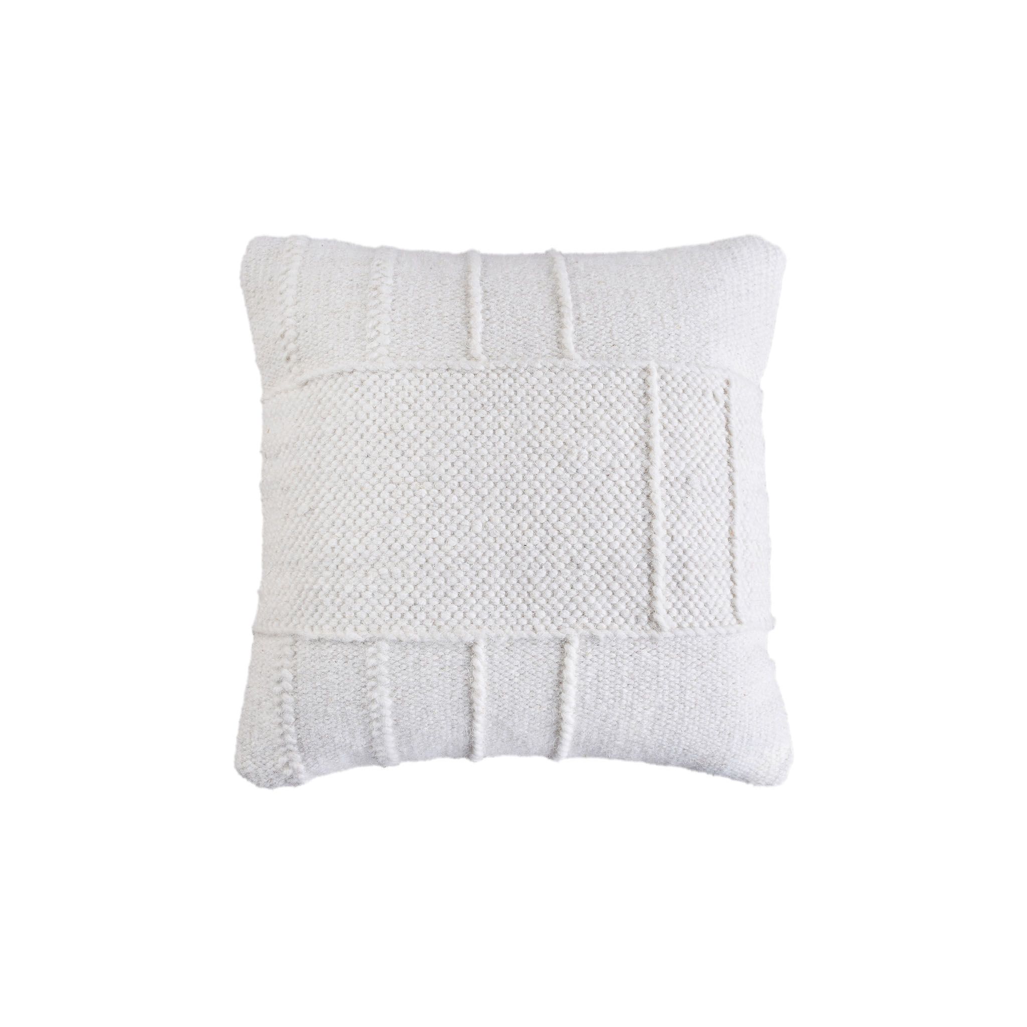 Cuscino decorativo con federa in lana, caratterizzato da texture materiche e lavorazioni in rilievo. Aggiunge un tocco di calore e personalità a divani, poltrone e letti. Il design naturale e neutro lo rende ideale per ogni ambiente.