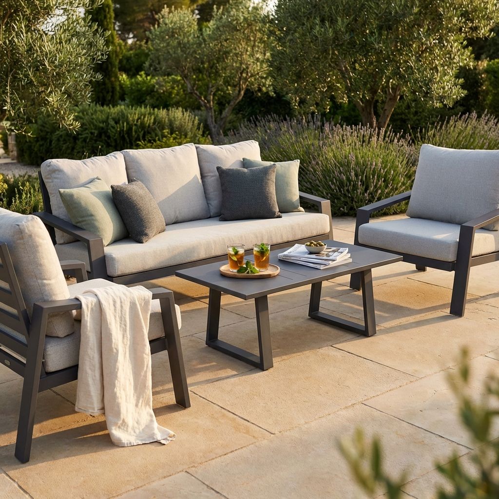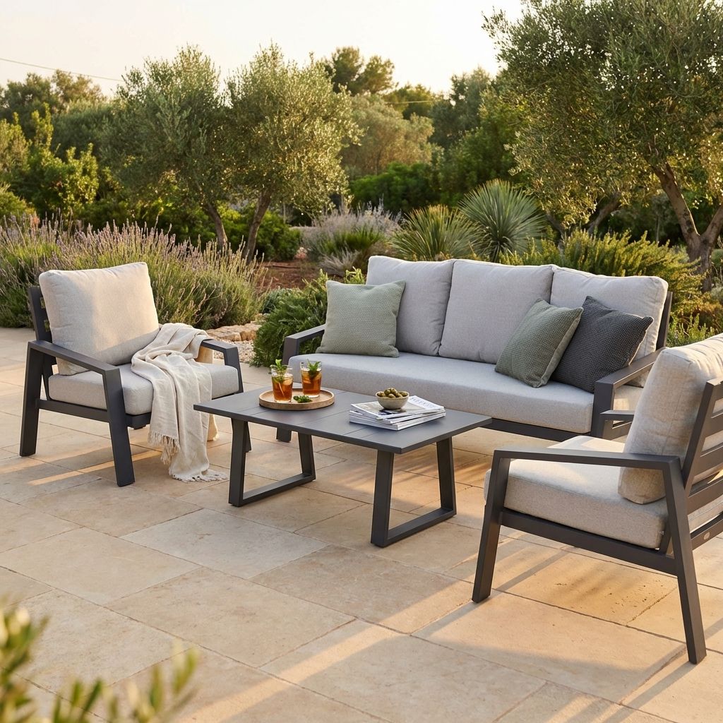 il salotto PERCY 5 posti dalla struttura imponente e massiccia è disponibili in 4 diversi colori antracite, taupe, bianco e tortora