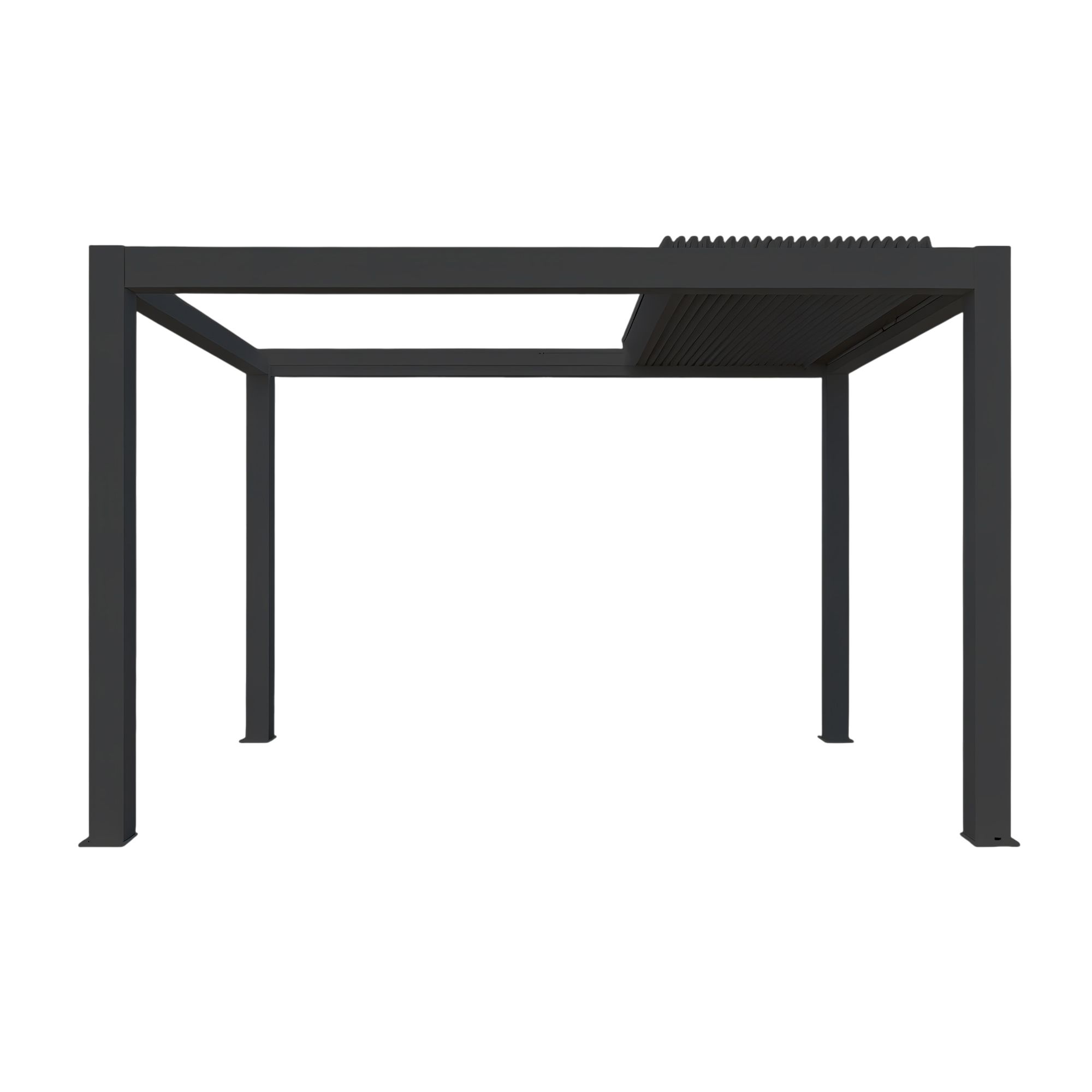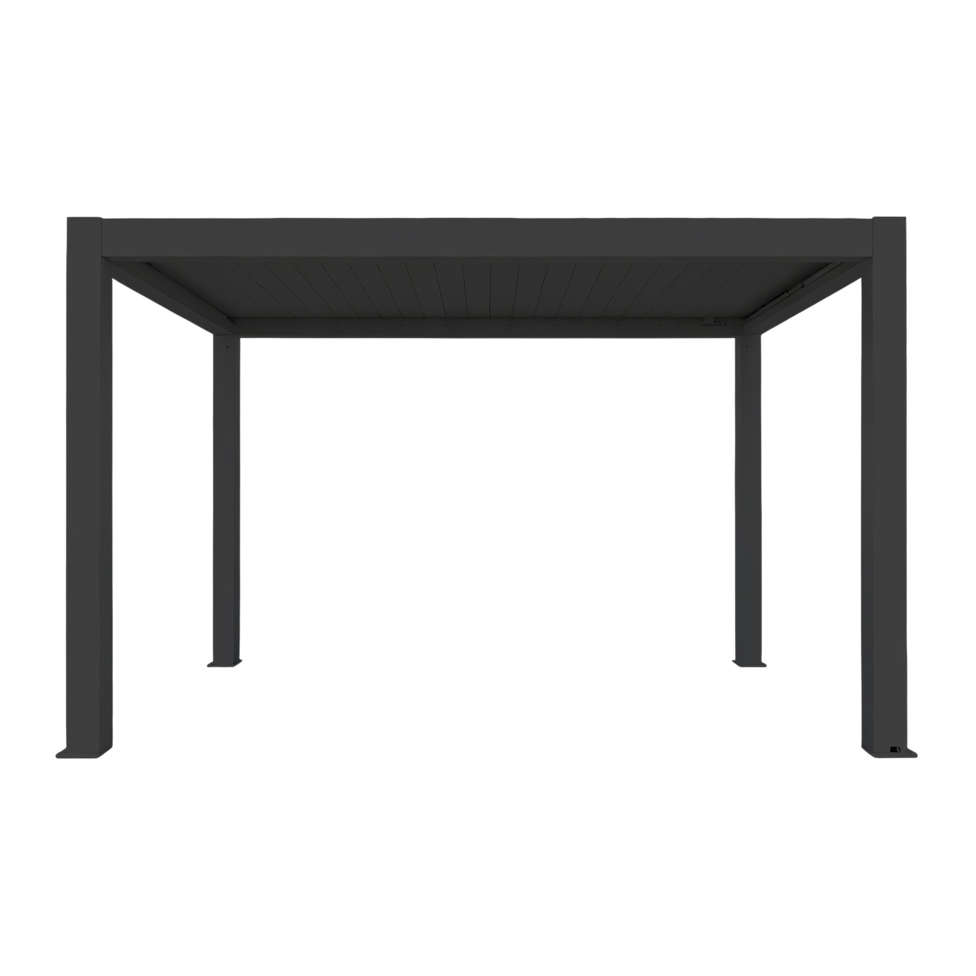 Pergola bioclimatica 4x4 interamente in alluminio, con lamelle orientabili e sistema di apertura retrattile motorizzato. Consente il controllo totale di luce e ventilazione e integra illuminazione LED per l’uso serale. Ideale per grandi spazi esterni, è disponibile nei colori bianco e antracite.
