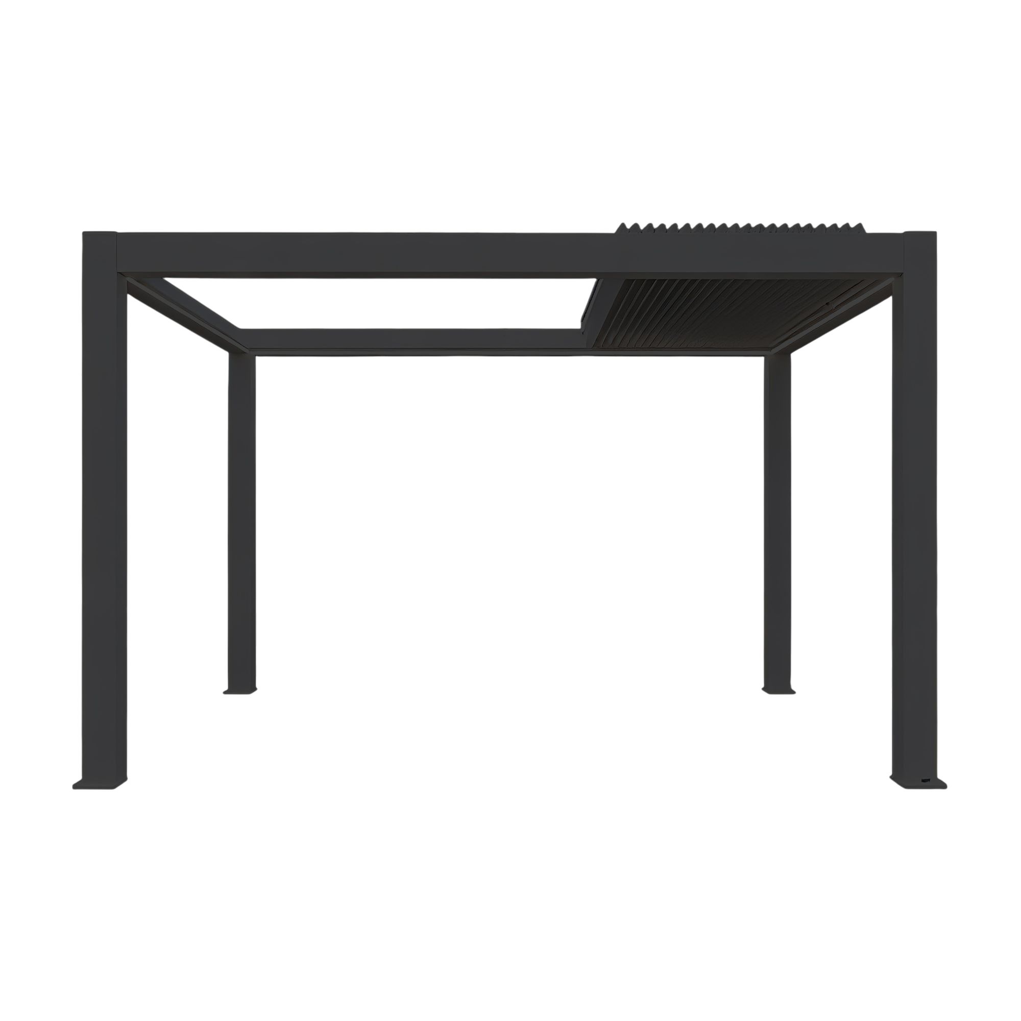 Questa pergola bioclimatica 4x4, grazie alle dimensioni generose, è ideale per coprire ampie superfici come giardini, terrazze di grandi dimensioni o zone dedicate alla convivialità, creando un ambiente confortevole e protetto in ogni momento della giornata. La struttura è interamente realizzata in alluminio, garanzia di solidità, resistenza agli agenti atmosferici e lunga durata nel tempo, con il vantaggio di una manutenzione minima. Il vero punto di forza è il sistema di lamelle orientabili motorizzate e retrattili, che consente non solo di regolare l’inclinazione per modulare luce e ventilazione, ma anche di arretrarle completamente, aprendo la pergola al cielo e lasciando entrare tutta la luminosità naturale. Un controllo intuitivo che permette di adattare lo spazio alle diverse condizioni climatiche e alle esigenze quotidiane con un semplice gesto. A completare l’esperienza, l’illuminazione LED integrata trasforma la pergola in un ambiente accogliente anche nelle ore serali, rendendola perfetta per cene all’aperto, momenti di relax o occasioni conviviali. Il design essenziale e contemporaneo si inserisce con naturalezza in contesti architettonici moderni, valorizzando lo spazio senza appesantirlo. Disponibile nei colori bianco e antracite, questa pergola bioclimatica 4x4 rappresenta una soluzione elegante e tecnologica, pensata per chi cerca comfort, design e funzionalità in un’unica struttura.