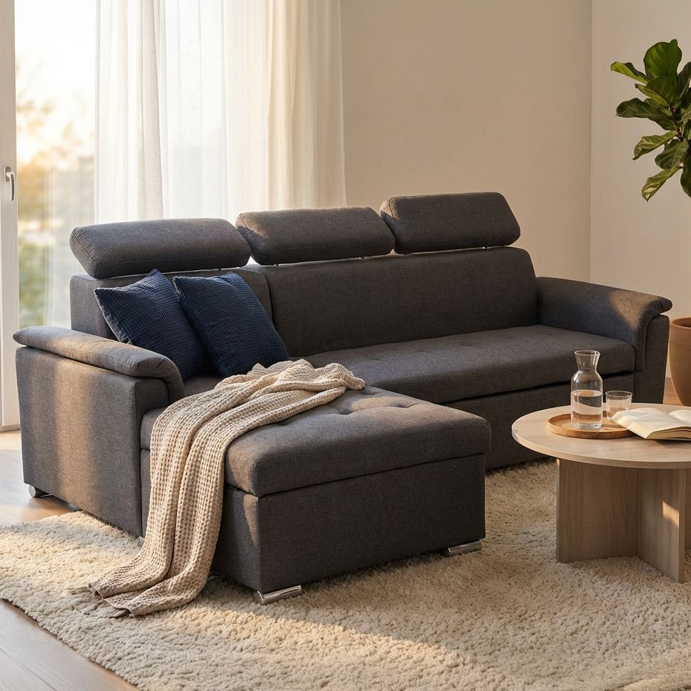 Il divano PETER è disponibile in colore blu, tortora, grigio chiaro o grigio scuro