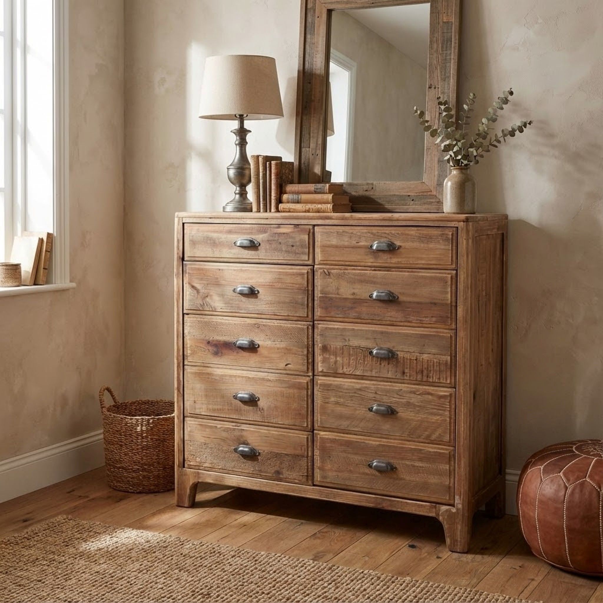 Se volete dare un tocco rustico al vostro arredamento, la credenza PEZ è perfetta per voi. Realizzata in legno massello rigenerato, ogni pezzo è unico e ha un aspetto antiquato grazie ai segni di usura. Il top robusto offre spazio per oggetti decorativi e i cassetti e le ante ti permettono di organizzare gli oggetti. Inoltre, gli sportelli mantengono la tua privacy e proteggono gli oggetti dalla polvere. Questa credenza è unica nel suo genere e ideale per la camera da letto o per riporre la biancheria.
