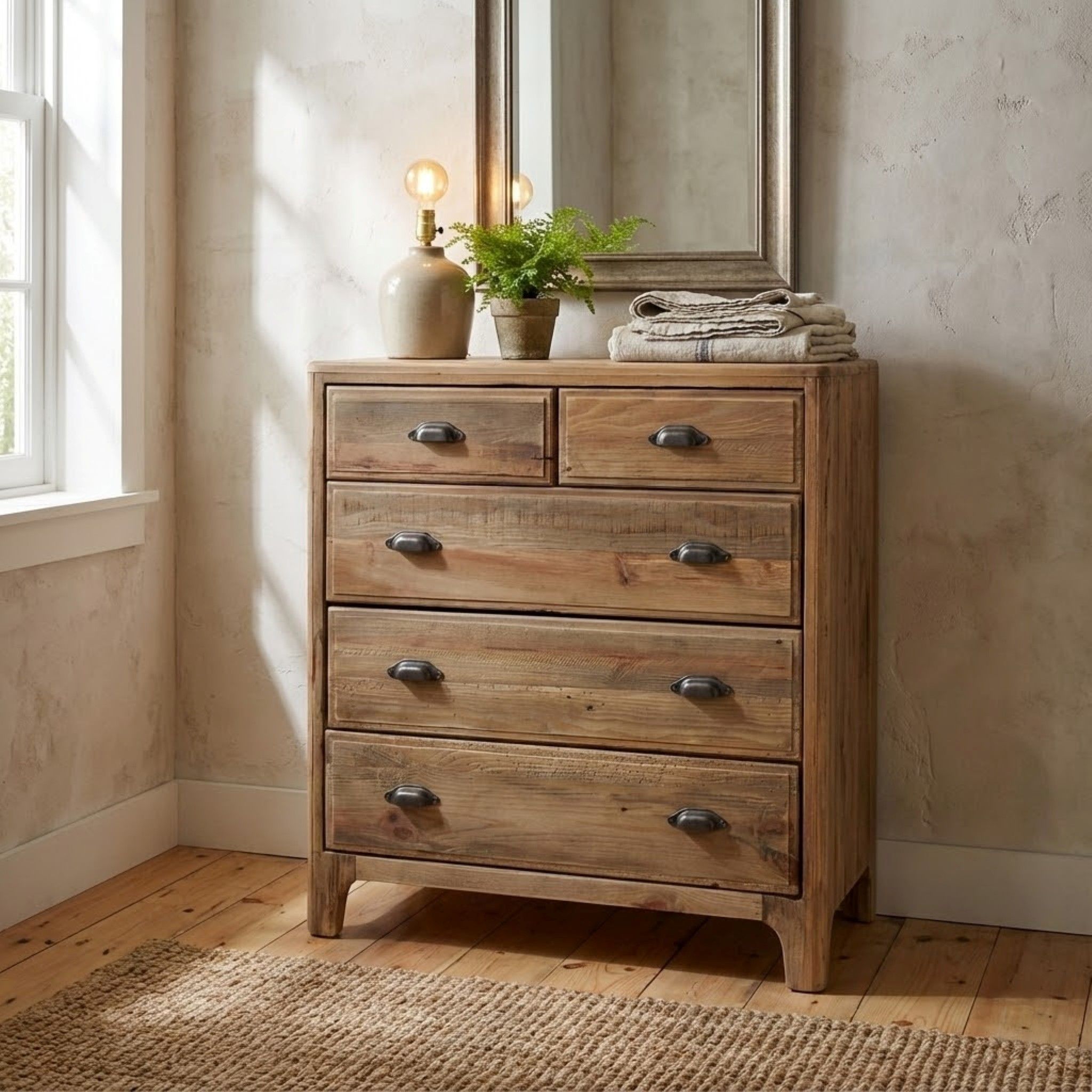 Questa cassettiera PEZ è il perfetto mix tra solidità e versatilità, realizzata interamente in legno massello di pino riciclato. Grazie alla sua lavorazione artigianale estremamente accurata, puoi essere sicuro della sua qualità. Con ben 8 ampi cassetti, avrai spazio più che sufficiente per tenere tutto a portata di mano. Le maniglie a conchiglia in metallo rendono i cassetti facili da aprire e chiudere. Non solo è funzionale, ma aggiunge anche un tocco country a qualsiasi ambiente. Che tu stia cercando di arredare la tua casa in stile country o che tu abbia un altro tipo di arredamento, questa cassettiera si adatterà senza problemi. Non perdere l'opportunità di avere una cassettiera che sia sia pratica che di grande impatto estetico!