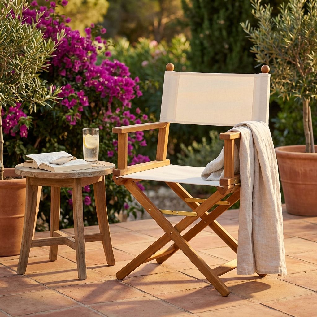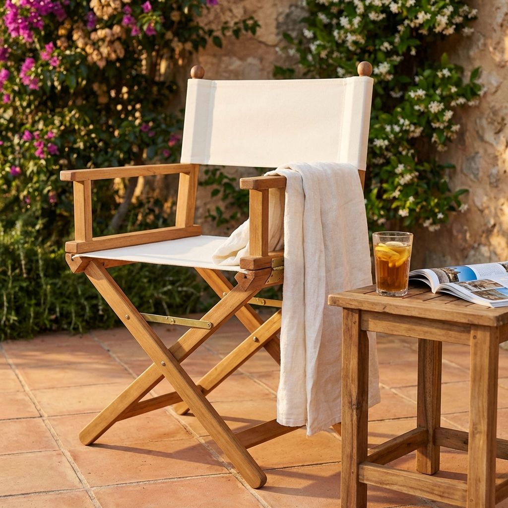 La poltrona da giardino PHYLA: pieghevole, in legno di acacia e poliestere color ecrù. Perfetta per l'uso esterno, risparmiando spazio e tempo. Adatta a giardini, terrazzi e attività commerciali.