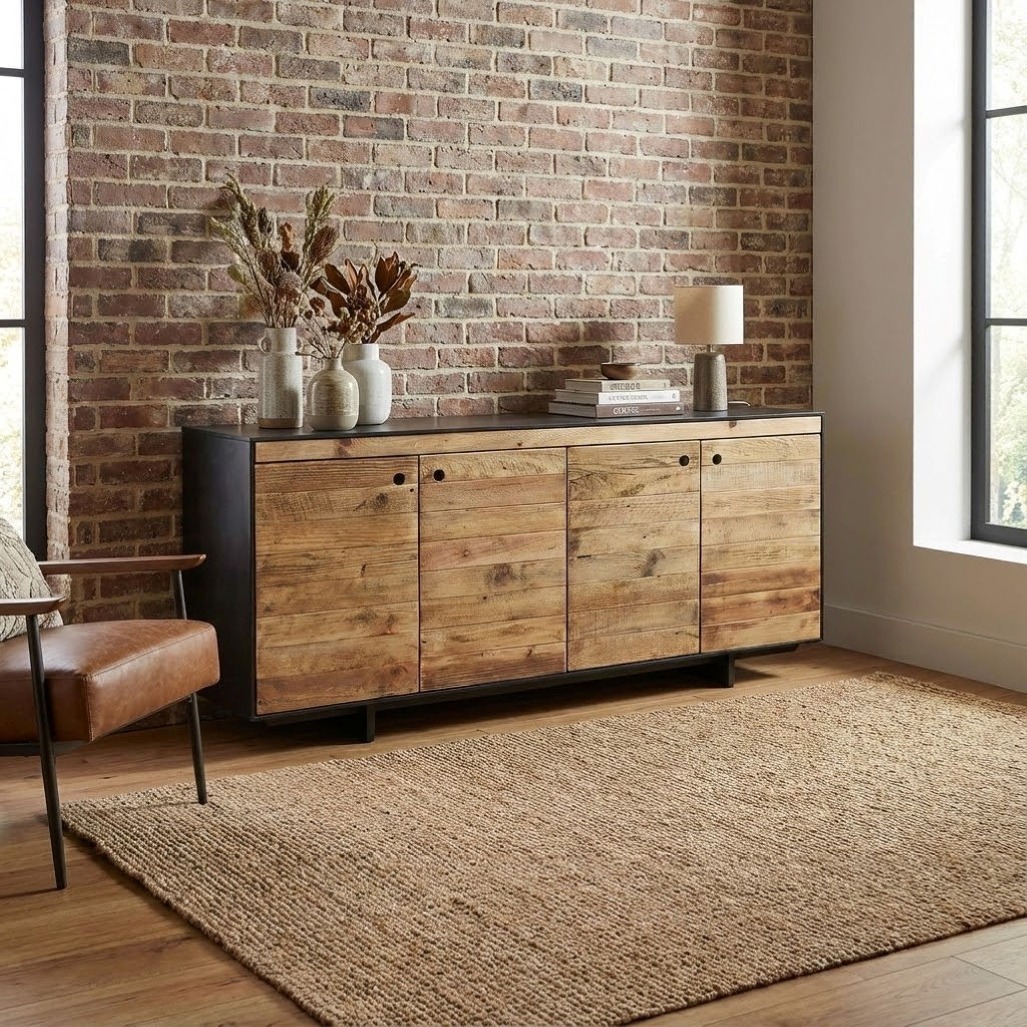 La madia PINUS BLACK è l'emblema dello stile etnico e naturale grazie alla sua finitura in legno invecchiato proveniente da pino riciclato. Questo mobile industriale si adatta perfettamente a qualsiasi tipo di arredamento e può essere collocato con disinvoltura in sala da pranzo, soggiorno o cucina. Le 4 antine che compongono la madia proteggono due ampi vani separati da un ripiano, e ogni sportello è dotato di magneti per garantire una chiusura sicura. Crea l'atmosfera invitante che hai sempre desiderato con PINUS BLACK: il suo tono caldo, la finitura brillante e audace doneranno quel tocco personale che stai cercando per la tua casa. Cambia qualcosa, affinché tutto cambi!