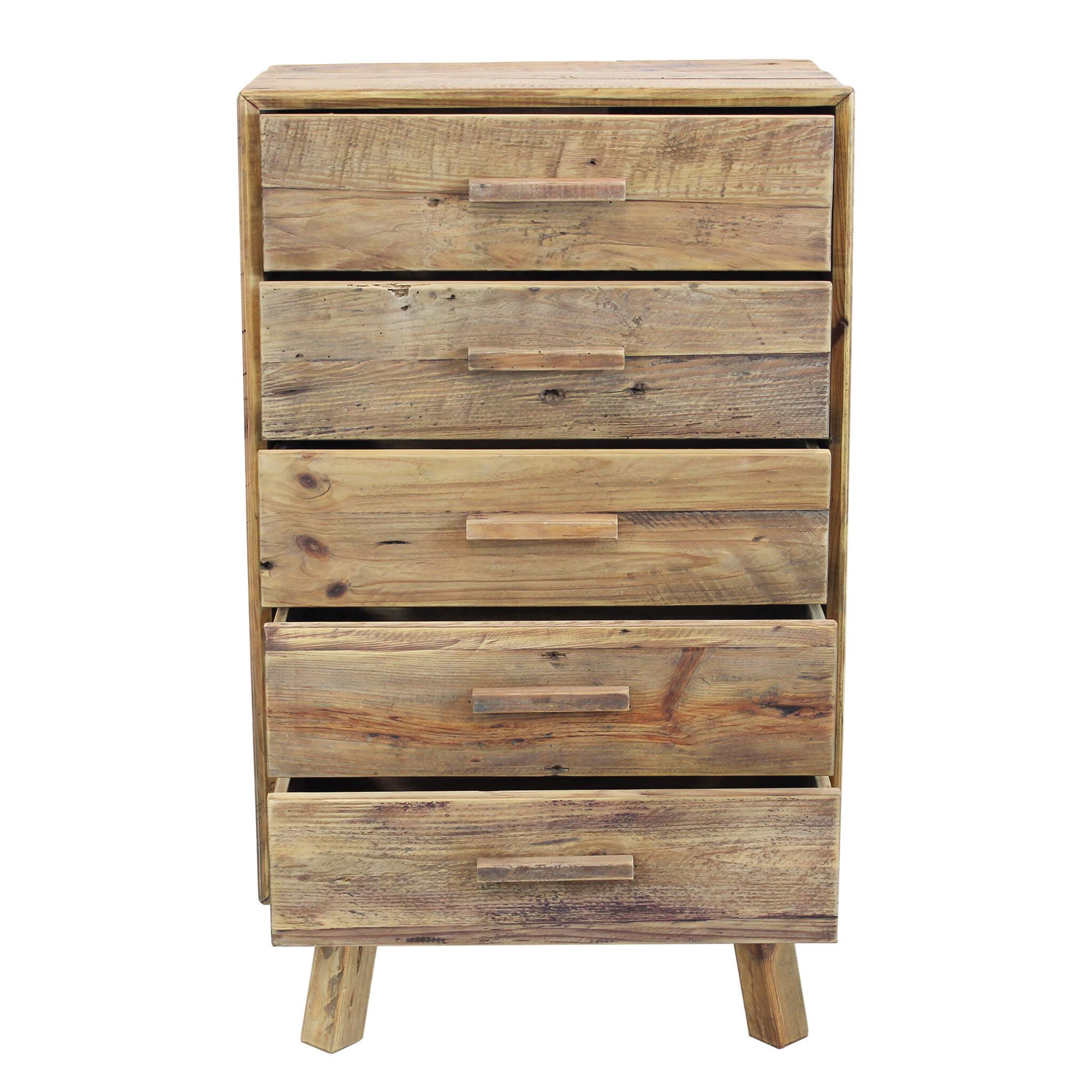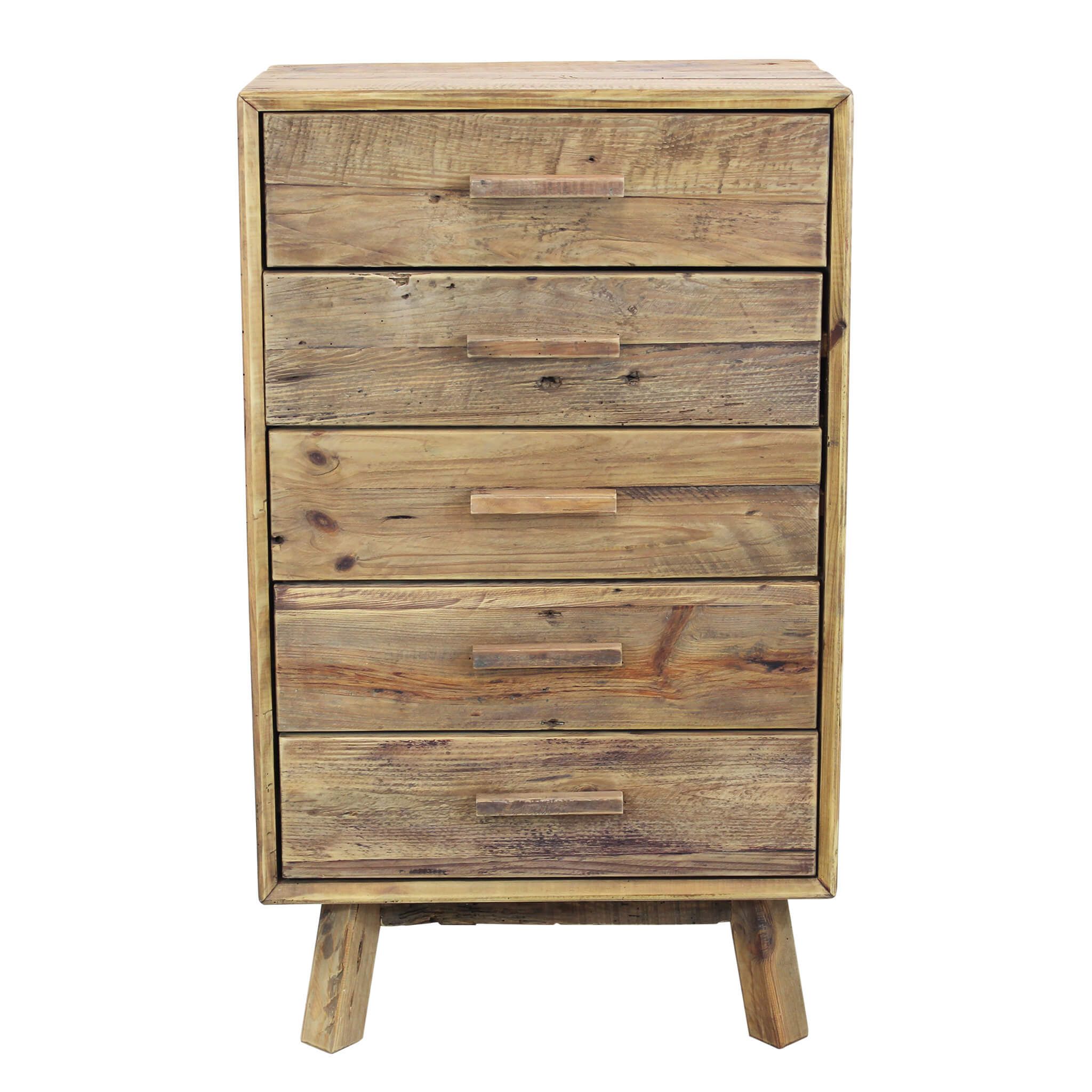La cassettiera PINUS in legno di pino riciclato unisce carattere e personalità. Con cinque cassetti spaziosi, offre un'archiviazione conveniente per i tuoi vestiti e oggetti personali. La sua base semplice e le gambe squadrate e oblique creano un aspetto maestoso. Puoi utilizzare la superficie superiore per esporre lampade, accessori o opere d'arte. La finitura in legno grezzo aggiunge uno stile industriale perfetto.