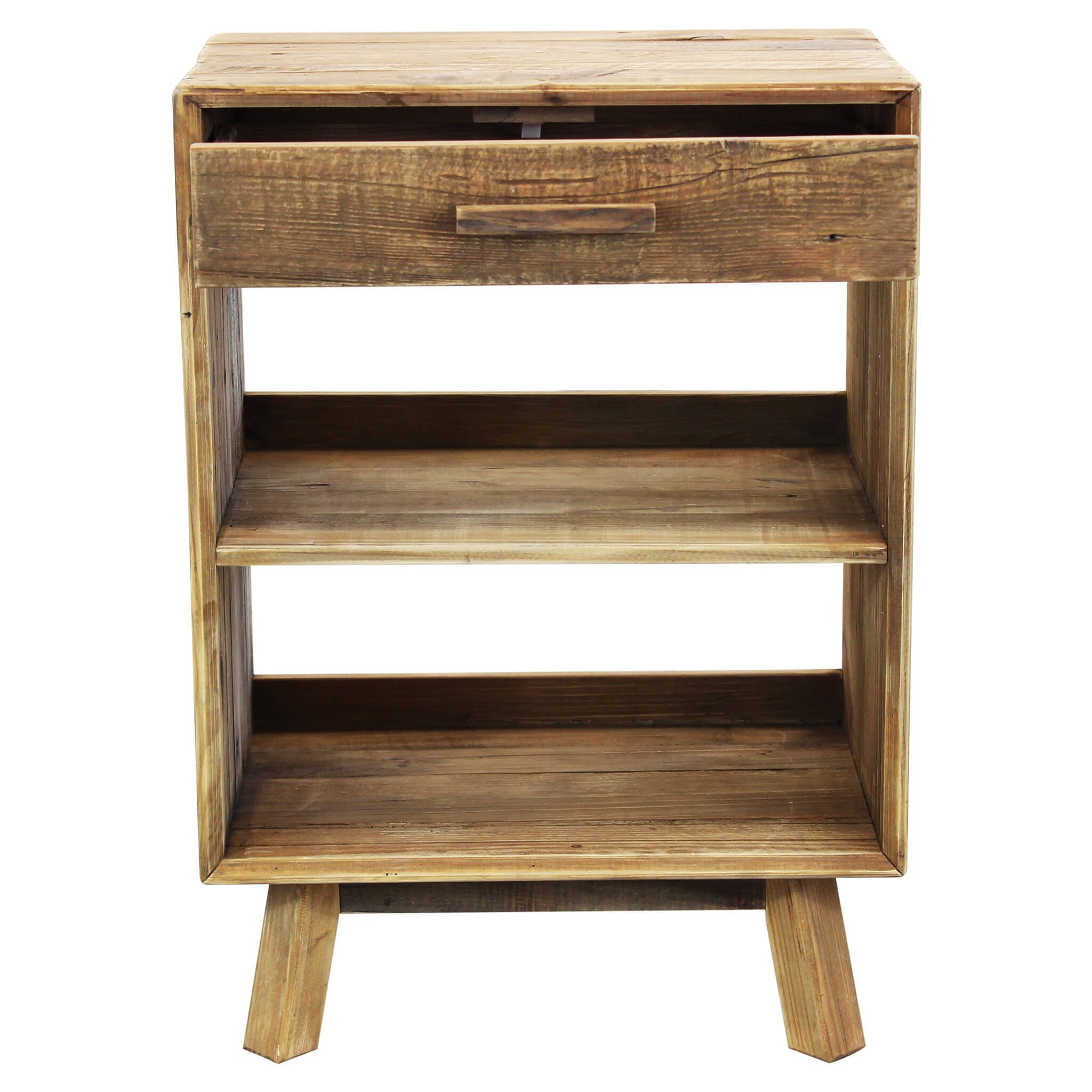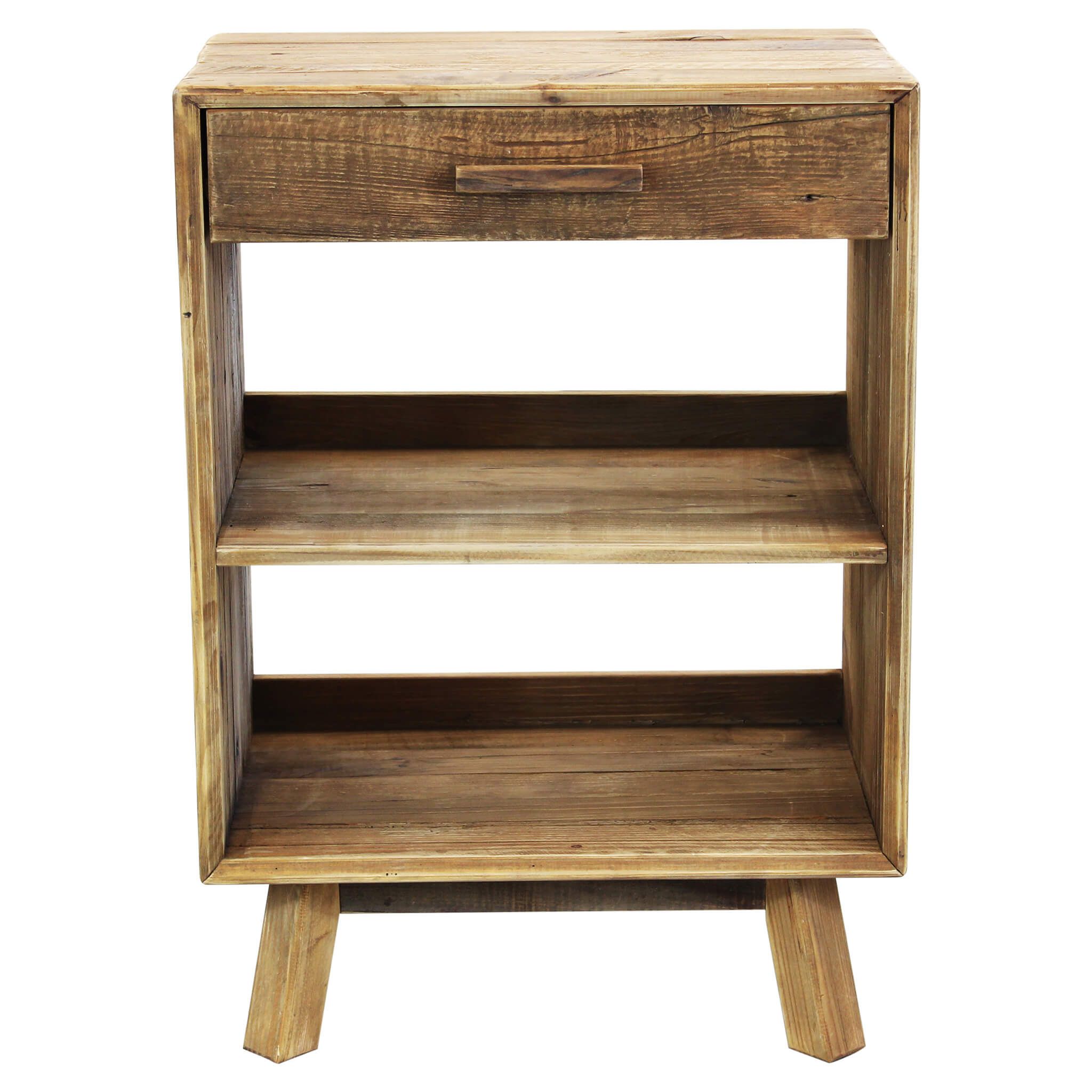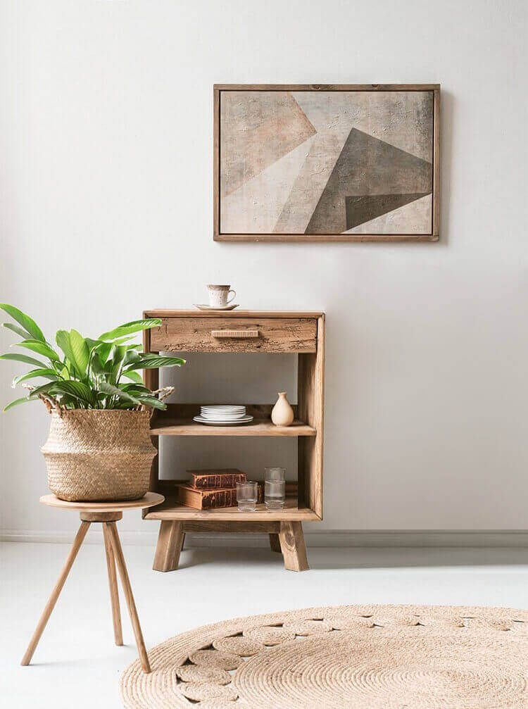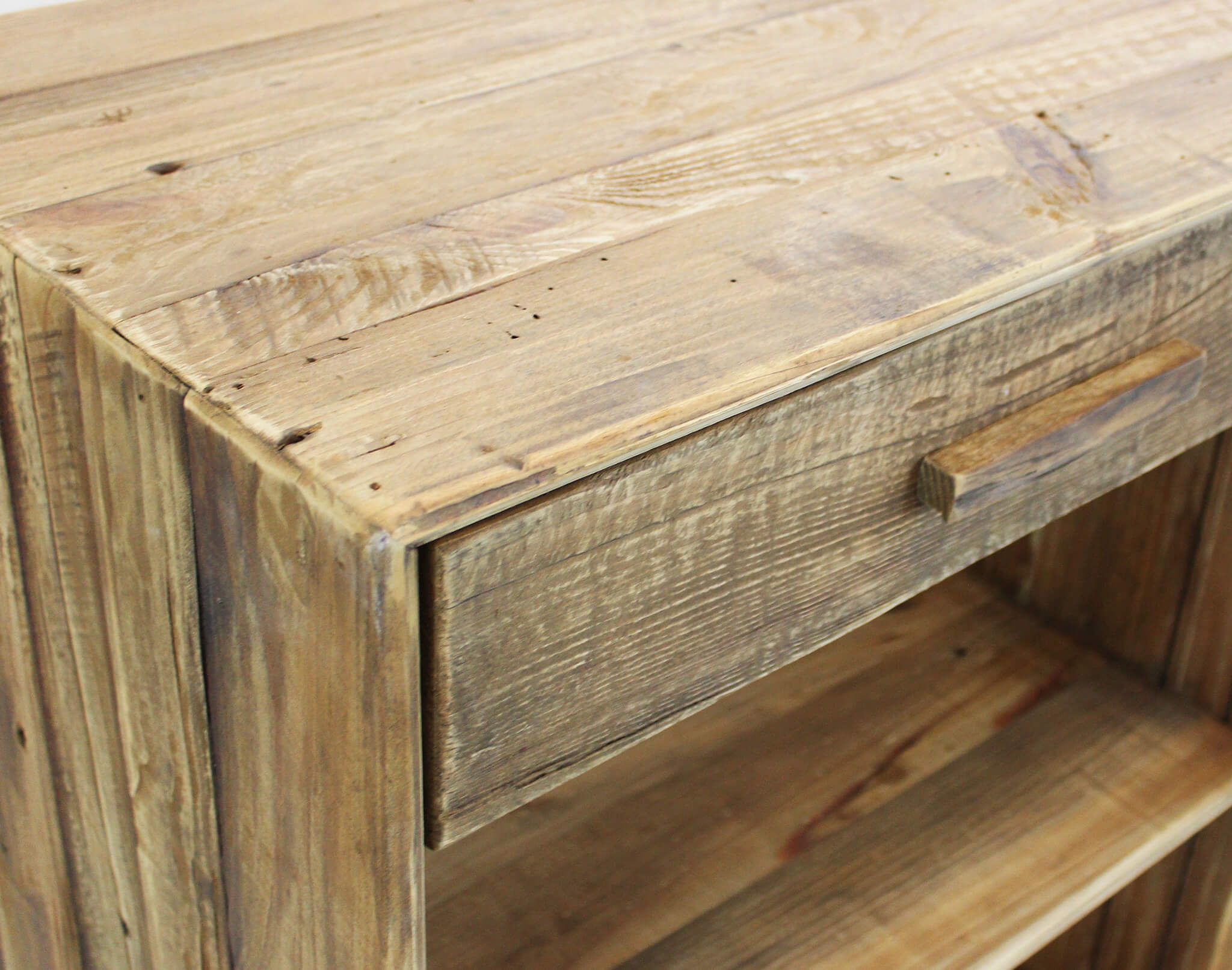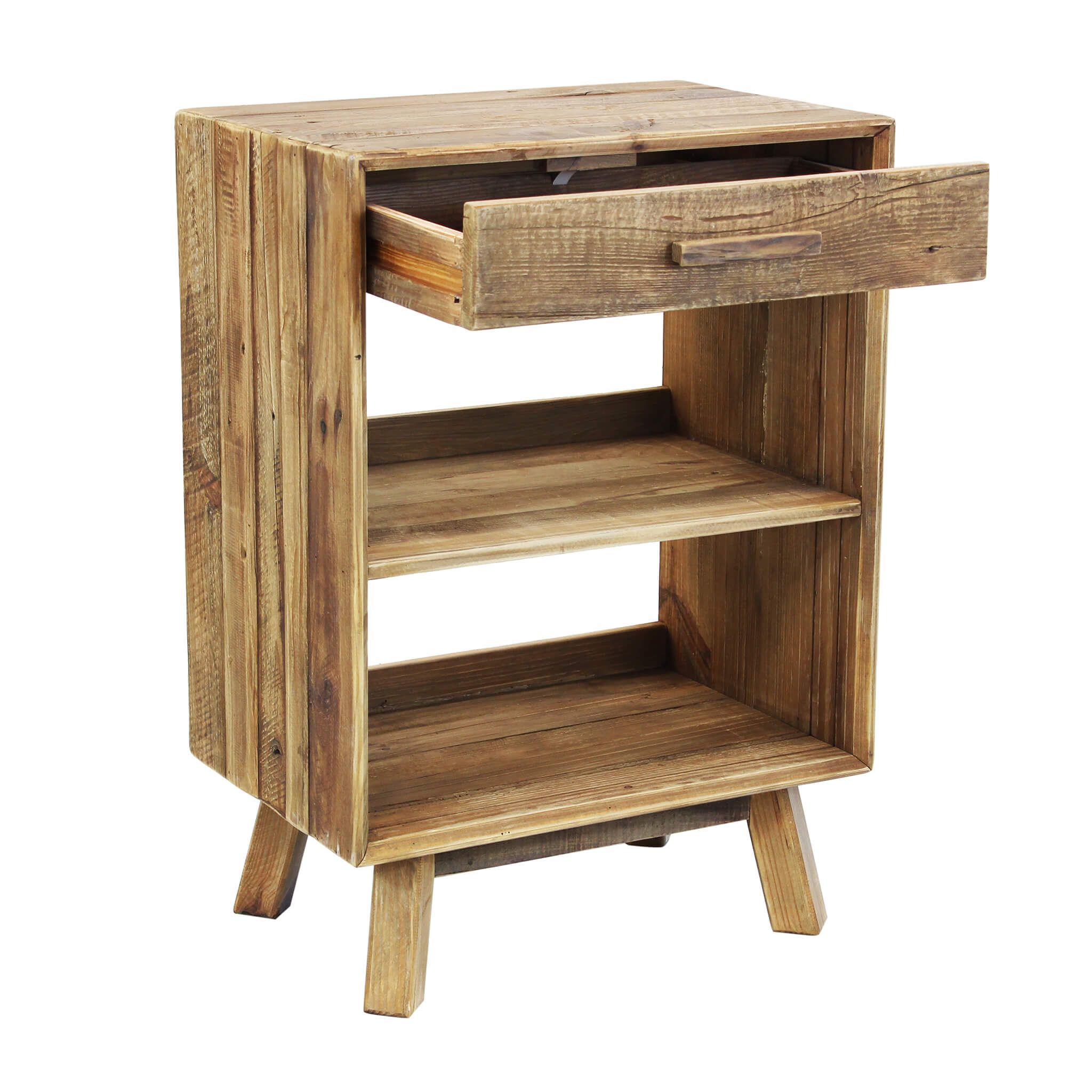 Il comodino PINUS, realizzato in pino riciclato, combina perfettamente lo stile moderno e minimale con la bellezza della natura. Con un cassetto e due scaffali, offre molta versatilità nel riporre libri, occhiali e altri oggetti. La sua struttura naturale ed eco-friendly si abbina in modo impeccabile agli altri mobili della linea PINUS per creare la camera da letto dei tuoi sogni.