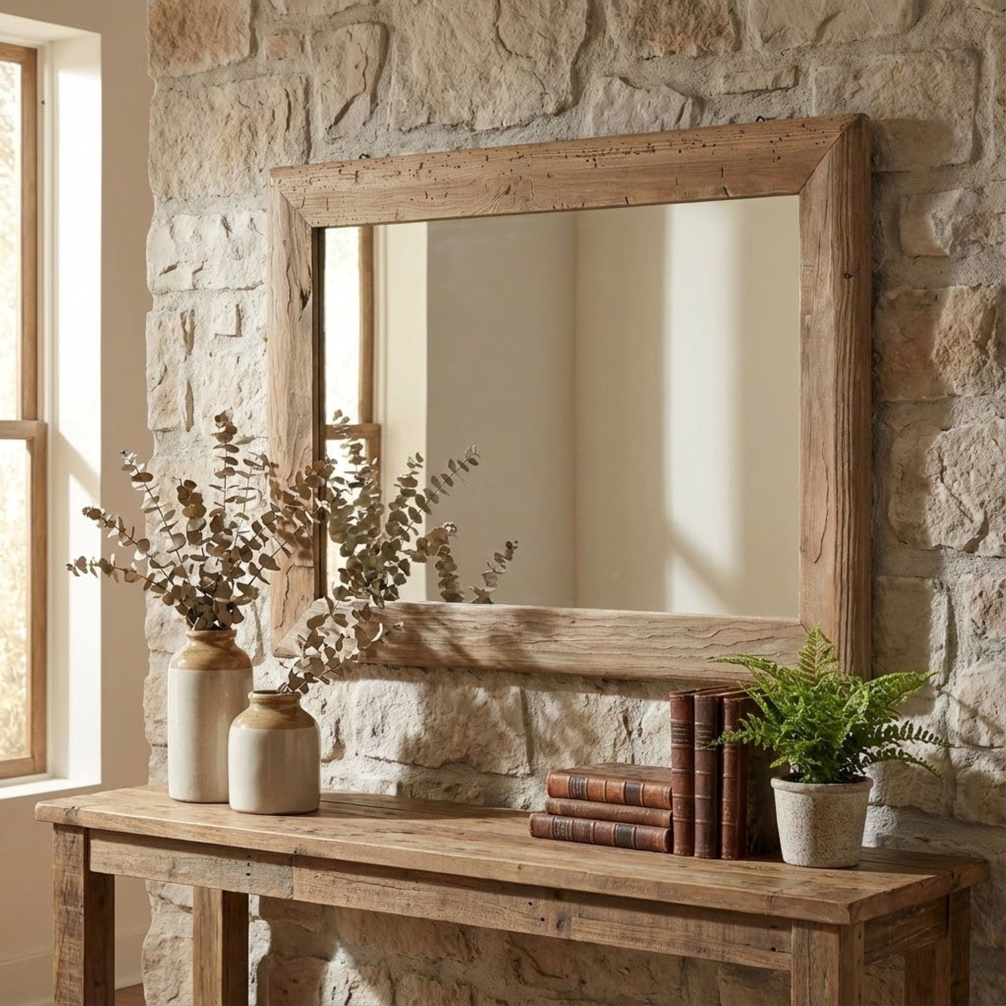 Grazie a PINUS, le tue stanze si arricchiscono di alta qualità. I profili decorativi della cornice rendono lo specchio da parete un vero gioiello estetico e funzionale. Questo materiale unico è molto apprezzato dagli amanti del design, poiché i segni del tempo visibili non sono imperfezioni, ma caratteristiche che conferiscono valore e originalità. Ogni articolo sarà sempre unico, senza copie identiche.