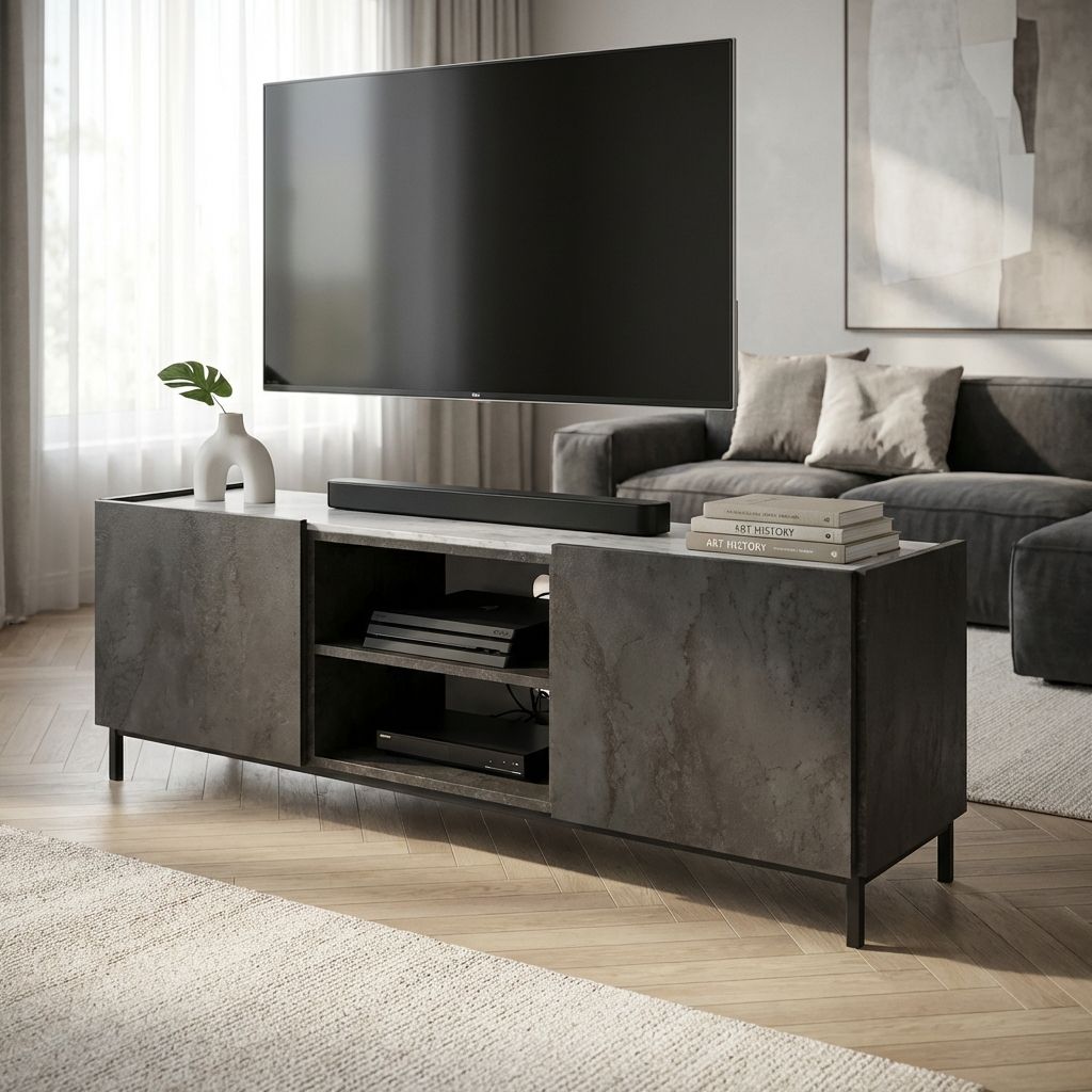 Il porta TV POLYHYMNIA è disponibile in colore antracite o cemento