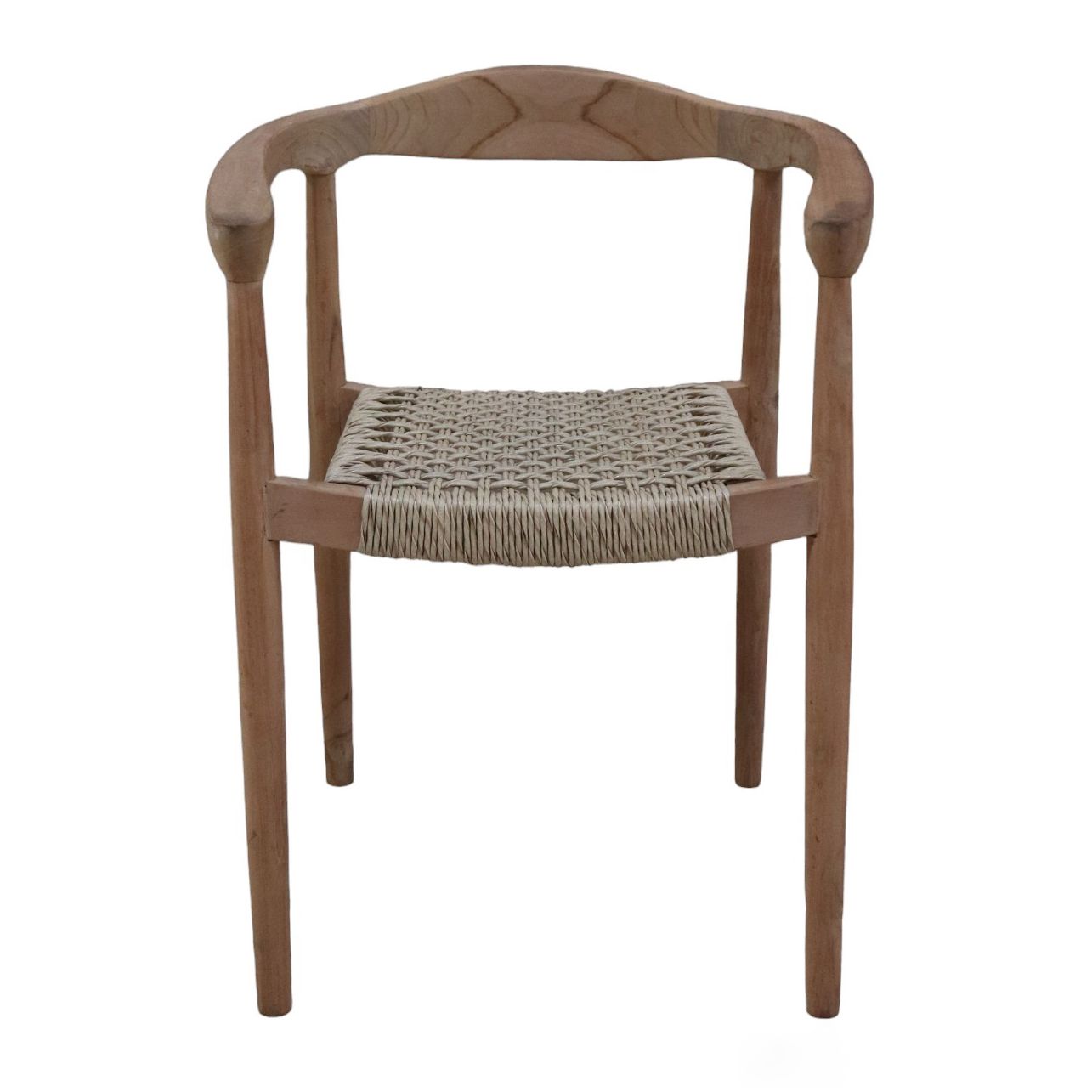Poltrona in resistente legno di teak con seduta intrecciata e braccioli dalle linee morbide. Struttura solida, design naturale ed elegante, ideale per sala da pranzo, studio o living.