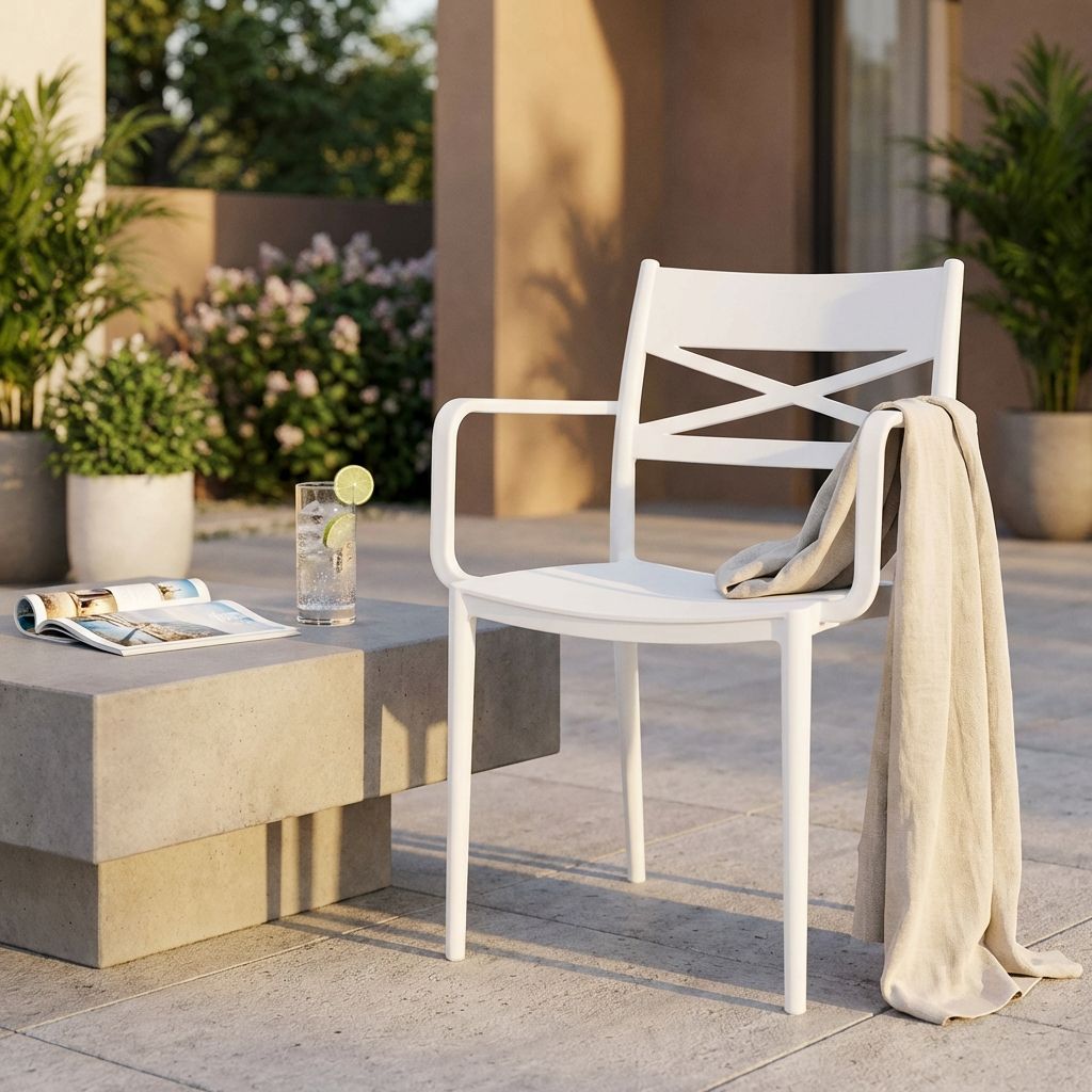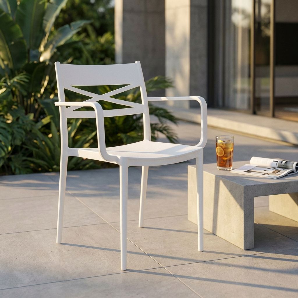 Disponibile nei colori grigio, bianco, verde, giallo e blu, questa poltrona si adatta perfettamente a ogni stile di arredamento, per interni ed esterni.