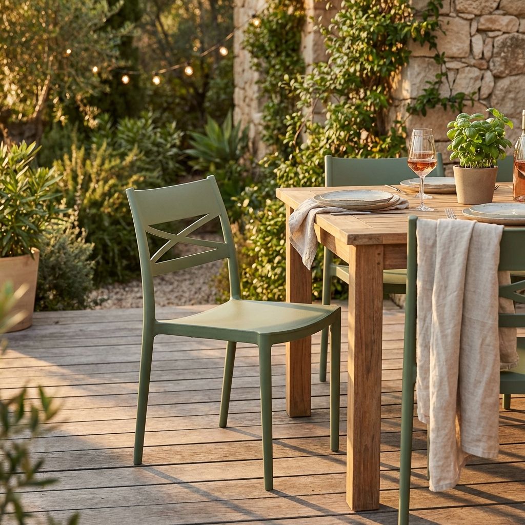 Disponibile nei colori grigio, bianco, verde, giallo e blu, questa sedia si adatta perfettamente a ogni stile di arredamento, per interni ed esterni.