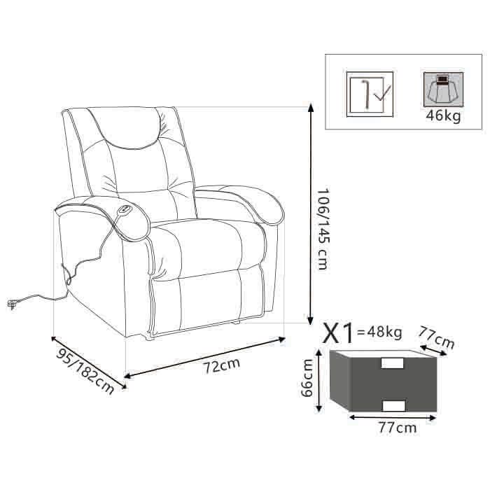 La poltrona Relax Elettrica è un ideale connubio tra tecnologia e comfort. Struttura solida, materiali di altissima qualità, tecnologia all'avanguardia fanno di questa poltrona il punto di riferimento del settore. Ideale per un comodo e piacevole riposo grazie alla reclinabilità dello schienale e simultaneo innalzamento della pediera mediante telecomando. La poltrona relax ha come accessorio una tasca laterale porta riviste in cui inserire il telecomando. Il design arrotondato potra essere abbianato ad uno stile di arredamento classico o moderno, la poltrona Relax è ideata con struttura in legno e metallo tubolare, imbottitura in poliuretano e rivestita in morbida ecopelle che rende la pulizia della poltrona comoda utilizzando anche solo un panno umodo.