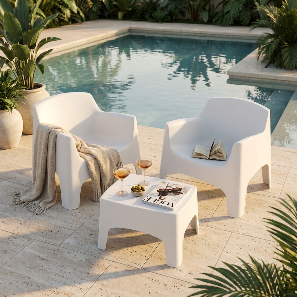 Questo set da esterno in resina monoblocco nasce dall’incontro perfetto tra praticità, estetica e resistenza: un complemento d’arredo pensato per vivere gli spazi con leggerezza, senza rinunciare alla solidità. Le due poltrone, ampie e accoglienti, avvolgono la persona con una seduta comoda grazie alle forme ergonomiche e al design avvolgente. Il tavolino basso, coordinato nello stile, completa il set creando un piccolo angolo di convivialità. Realizzato completamente in polietilene, questo set è la scelta ideale per hotel, bar, piscine, stabilimenti balneari e spazi contract, ma si inserisce con la stessa naturalezza anche in giardini privati, terrazze e verande moderne. La leggerezza della struttura e la possibilità di impilare le poltrone lo rendono comodo da gestire, spostare, riporre e pulire. Disponibile in un’ampia gamma di colori — bianco, taupe, blu, nero, verde, rosso, giallo, grigio chiaro — permette di personalizzare l’ambiente e creare atmosfere diverse: rilassanti, eleganti, vivaci o minimal. Le superfici lisce, le linee morbide e l’aspetto moderno, lo rendono un arredo moderno, funzionale e sempre pronto all’uso.