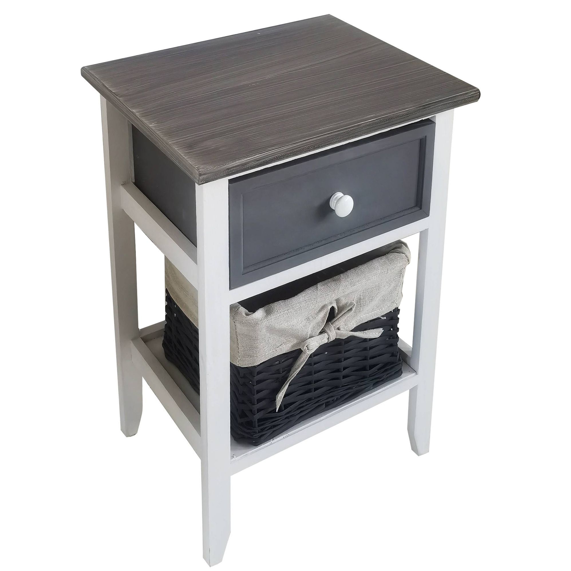 Questo mobiletto in legno con un cassetto e una cesta è una soluzione pratica e decorativa per organizzare piccoli spazi con eleganza. Il suo design e la combinazione di materiali e finiture, lo rendono perfetto per ambienti shabby chic, country o nordici. La struttura è realizzata in legno dipinto con effetto decapato, che dona un aspetto vintage e raffinato rendendolo perfetto per camere da letto, bagni, ingressi o soggiorni. Sotto il cassetto, ideale per riporre piccoli oggetti come chiavi, documenti o accessori personali, si trova una cesta in vimini intrecciato, rivestita in tessuto e rifinita con un fiocco decorativo. La cesta è estraibile e offre spazio per riporre asciugamani, prodotti per il bagno o altri oggetti, garantendo un'organizzazione ottimale. Grazie alle sue dimensioni compatte, questo mobiletto è ideale per chi desidera un complemento d’arredo funzionale senza occupare troppo spazio. Può essere utilizzato come comodino, come mobiletto da ingresso o come soluzione di contenimento per il bagno.