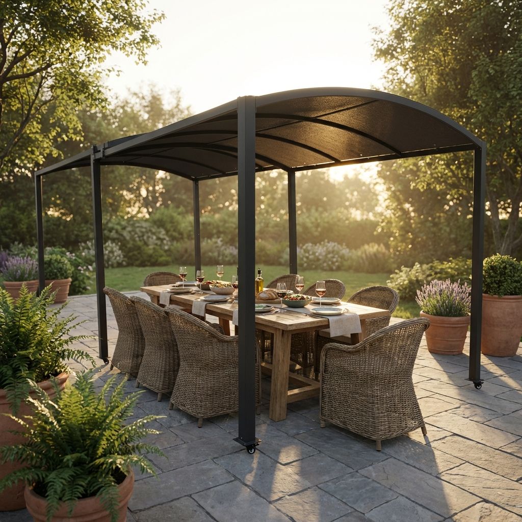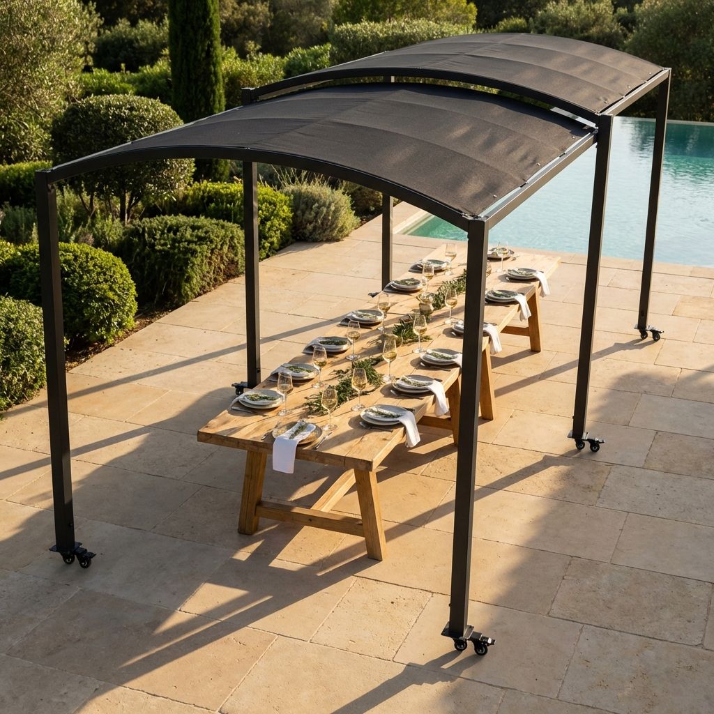 Hai ospiti per pranzo e non hai abbastanza spazio al tavolo? Non temere, perché c'è una soluzione fantastica che ti aiuterà a fare spazio extra e a proteggerti dal sole! Ecco a te il sorprendente gazebo da giardino allungabile ROMERO! Questo gazebo è davvero un tesoro, grazie alla sua capacità di allungarsi fino al doppio della sua lunghezza con facilità grazie alle ruote. Immagina quanti amici potrai invitare senza preoccuparti dello spazio!La struttura in acciaio verniciato e il tettuccio in tessuto di poliestere da 300gr ti garantiranno affidabilità e robustezza. Inoltre, le ruote orientabili e bloccabili ti offrono una maggiore sicurezza. Puoi spostare e fermare il gazebo con facilità, senza doverti preoccupare che voli via con una folata di vento!
