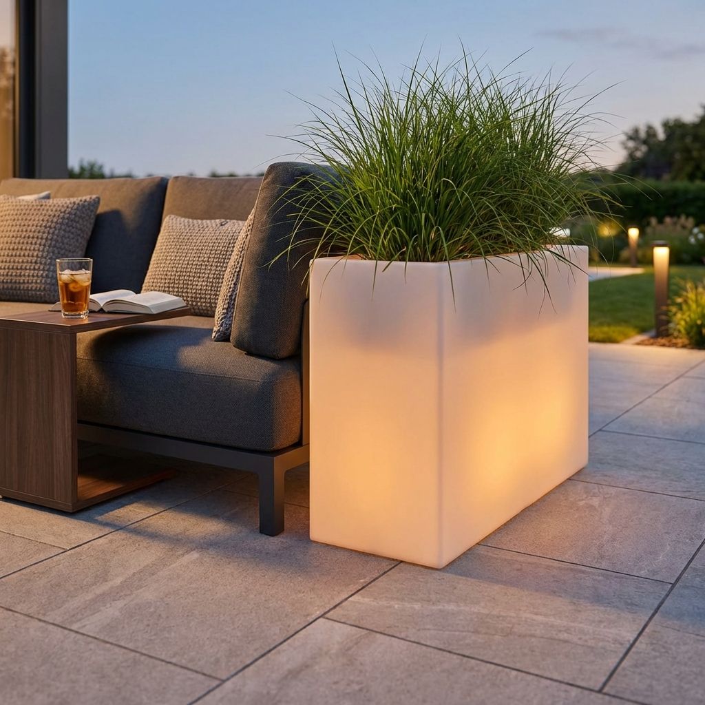 La fioriera RON è la scelta perfetta per aggiungere un tocco di stile al tuo giardino. Con la sua forma elegante e moderna, illuminata da una lampada multicolor, questa fioriera farà sicuramente colpo sui tuoi ospiti. Realizzata con materiali di alta qualità, come il polietilene semi trasparente opacizzato, offre un effetto scenico sorprendente. Inoltre, è dotata di una lampada led RGB con telecomando per scegliere il colore desiderato. Non solo, ma questa versione presenta anche un pannello fotovoltaico per caricare la batteria durante il giorno, così potrai goderti la luce accogliente del tuo vaso luminoso anche nelle serate estive. Non lasciarti sfuggire l'opportunità di trasformare il tuo giardino in uno spazio incantevole con la fioriera RON.