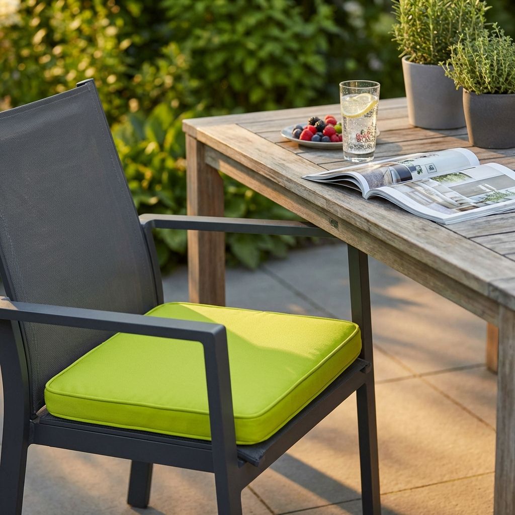 Il cuscino per esterno è disponibile in colore grigio, verde, rosso, verde a righe, tortora, ecrù e blu