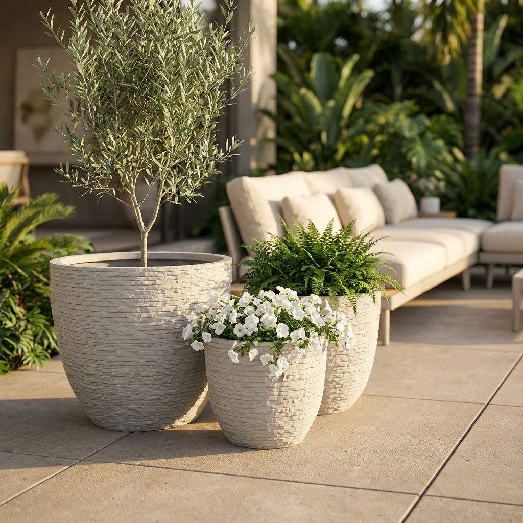 I vasi da giardino scanalati sono nobili e maestosi, rendendo la tua terrazza o giardino elegante. Con solchi raffinati, il tuo spazio esterno guadagnerà un look sofisticato. Questi vasi in fibra di argilla sono eleganti e resistenti, permettendoti di creare giochi di forme e materiali.