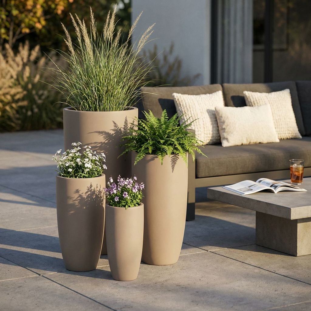 Hai mai desiderato completare il tuo arredo giardino con un tocco di eleganza e versatilità? Ecco a te il set perfetto: 4 vasi da giardino in diverse dimensioni, ideali per adattarsi a tutti gli spazi interni ed esterni. Con il loro affascinante tono beige sobrio e neutro, questi vasi sono un'aggiunta perfetta per il tuo giardino, terrazza o balcone, o persino all'ingresso di casa. Ma non è tutto: questi vasi sono realizzati con un composto speciale di argilla e fibra di vetro, che non solo li rende leggeri, ma garantisce anche la loro durata nel tempo. Quindi, cosa aspetti? Completare l'arredo del tuo giardino non è mai stato così facile!