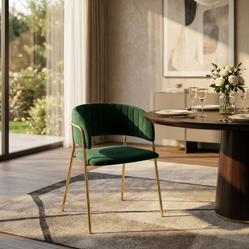 Sedia da interno in velluto, disponibile nei colori rosso, blu e verde. Linee eleganti e gambe dorate, per un tocco di lusso perfetto per qualsiasi ambiente.