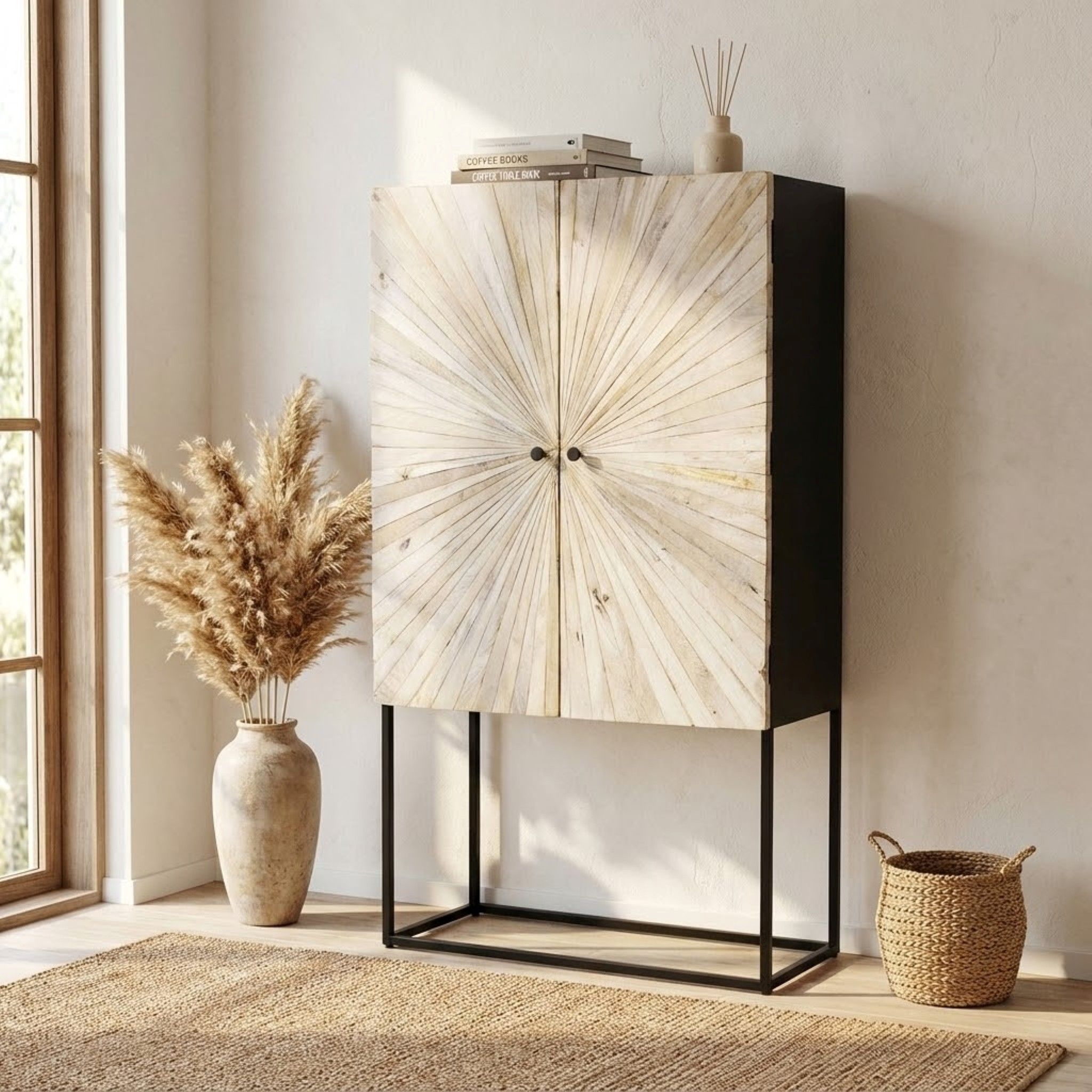 Vuoi dare un tocco di stile industriale al tuo soggiorno? Ti presentiamo la dispensa SPIRAL, un mix perfetto di acciaio e legno grezzo. Con le sue 2 ante spaziose, ti offre tutto il necessario per organizzare i tuoi oggetti. Il design ipnotico del legno di mango spazzolato e la finitura in acciaio nero creano un'atmosfera calda ed elegante. Non resistere, innamorati della tua casa ancora una volta!