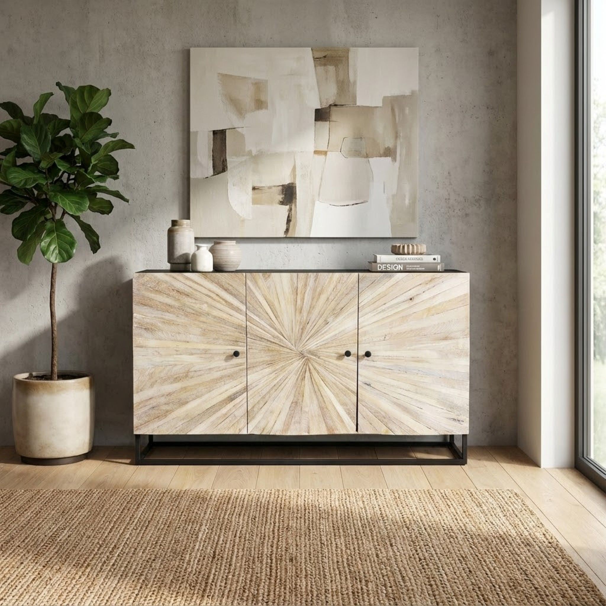 Sogni un mobile unico per dare personalità alla tua casa? Allora dovresti assolutamente innamorarti della madia SPIRAL! Questo pezzo dallo stile industriale combine l'acciaio e il legno grezzo in modo perfetto, creando un look caratteristico per i tuoi interni. Immagina solo quanta personalità darà alla tua sala! Con le sue 3 ante, la madia SPIRAL offre anche una grande capacità di archiviazione. Puoi finalmente organizzare e nascondere tutti quegli oggetti che ti sembrano sempre fuori posto in una soluzione di mobili ordinati e affascinanti. Ma la cosa più sorprendente di questo mobile non è solo la sua funzionalità, ma anche il suo aspetto ipnotico. Il legno di mango spazzolato crea un disegno elegante e sofisticato, che sicuramente catturerà l'attenzione di chiunque cammini nella tua sala.
