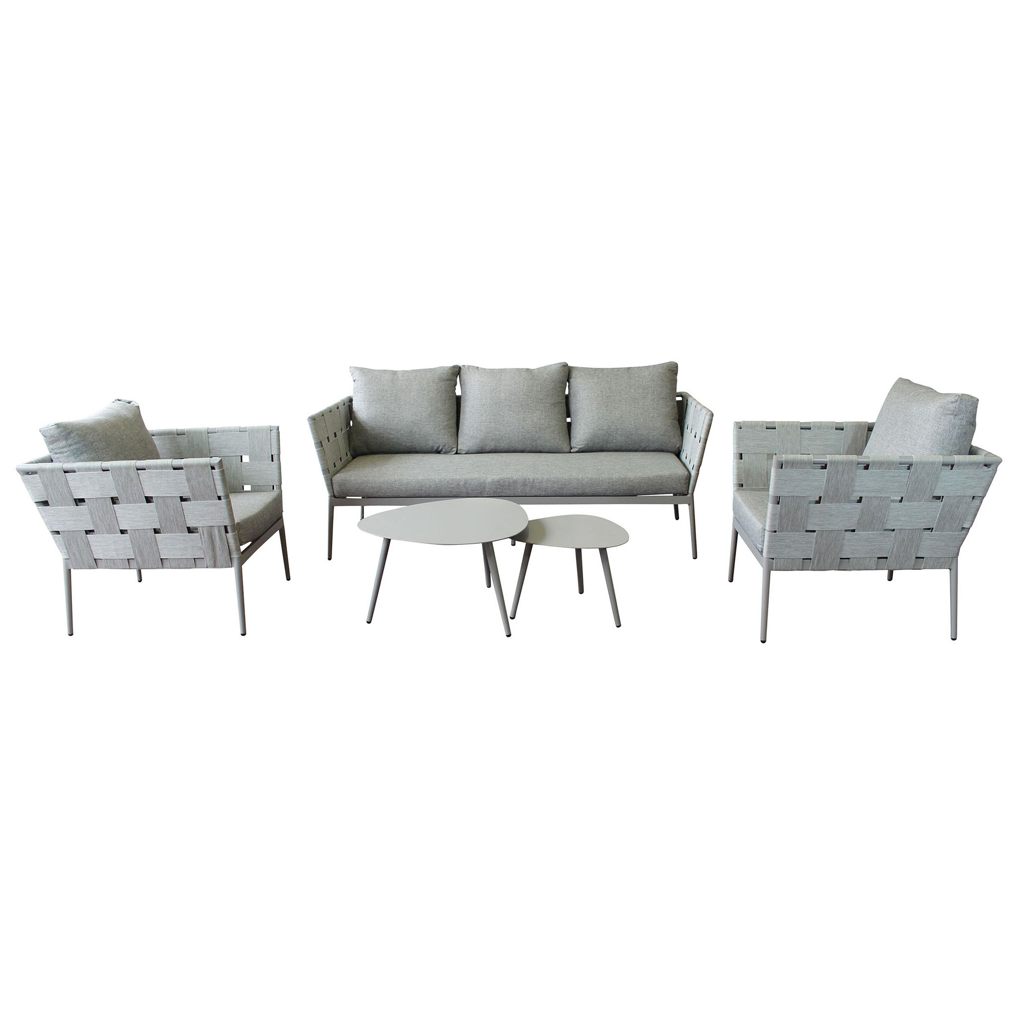 Il salotto da giardino SUNN in resina è una vera oasi di stile e comfort per i vostri spazi esterni. Il suo design innovativo, con linee nette e tessitura elegante, invita a momenti di puro relax sotto il sole. Pensate alla sensazione di accoglienza che questi mobili possono offrire quando vi sedete all'aperto per sorseggiare il vostro caffè mattutino o per rilassarvi al tramonto. Ogni pezzo è progettato per resistere agli elementi naturali, garantendo durabilità e mantenendo la bellezza inalterata nel tempo. I cuscini morbidi, decorati con motivi sottili e colori freschi, aggiungono un tocco di eleganza e sono un invito a godersi il tempo libero con comfort. L'armonia del set SUNN crea un ambiente invitante per ospitare amici e famiglia, trasformando il vostro giardino in uno spazio di convivialità e distensione. Questo salotto da giardino non è solo un insieme di mobili; è una promessa di giorni sereni all'insegna del relax, un investimento nella qualità della vita all'aria aperta.
