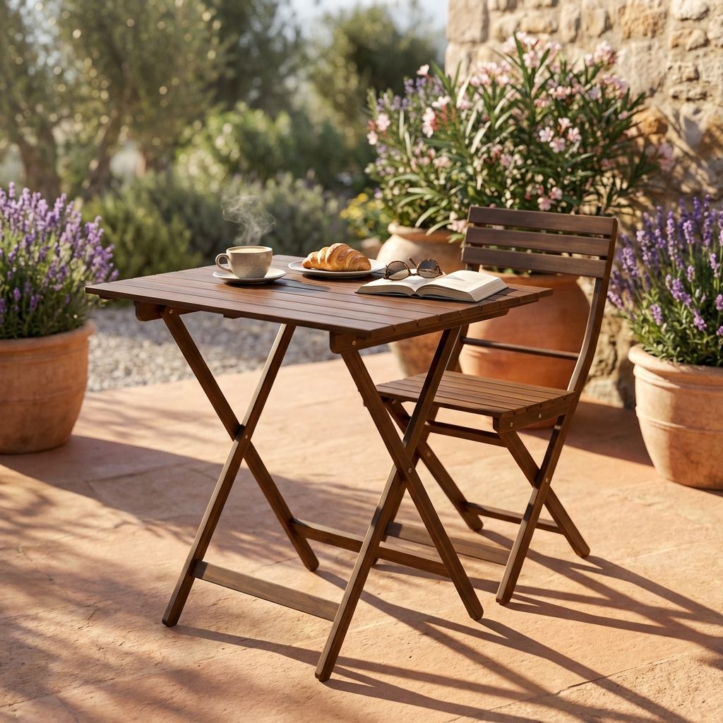 Se cerchi un tavolino pratico ma leggero e poco ingombrante, il nostro tavolo pieghevole è perfetto. È versatile, compatto e ideale per il tuo giardino, terrazzo o per viaggi fuori porta. Inoltre, la sua capacità di piegarsi ti permette di riporlo facilmente. E, non dimenticare di abbinarlo alla nostra sedia pieghevole tinta noce.