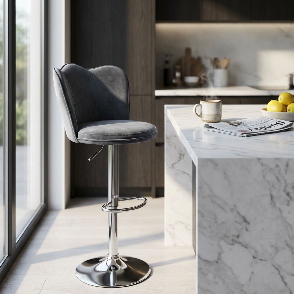 Lo sgabello TAZ è disponibile in colore tortora, nero grigio scuro