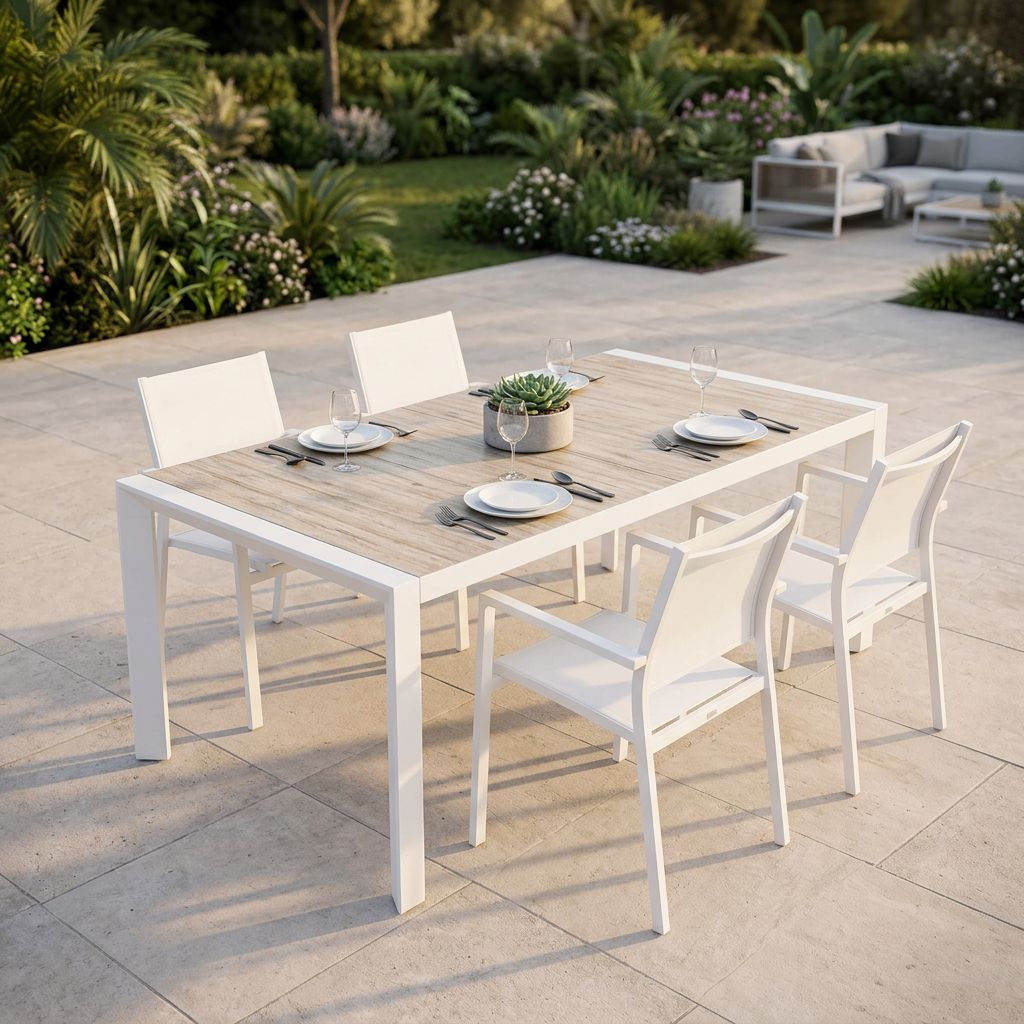 Il tavolo da giardino TED è disponibile in colore antracite, bianco e taupe in dimensione 175x235 cm allungabile fino a 235 cm