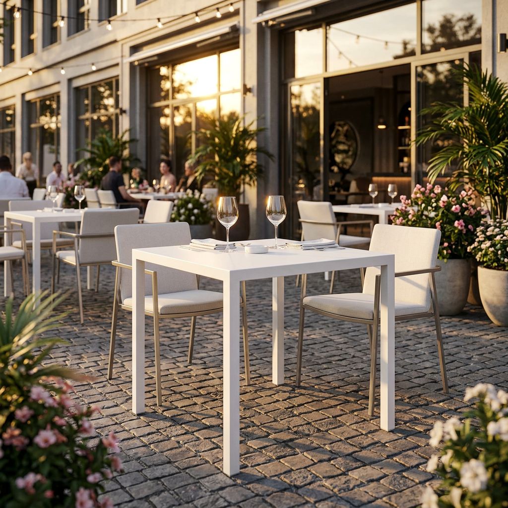 Tavolo contract 70x70 cm in metallo, ideale per bar, ristoranti, terrazze e spazi professionali. Struttura solida e resistente con sistema autolivellante per garantire stabilità anche su superfici irregolari. Design essenziale e moderno. Disponibile nei colori bianco e antracite.