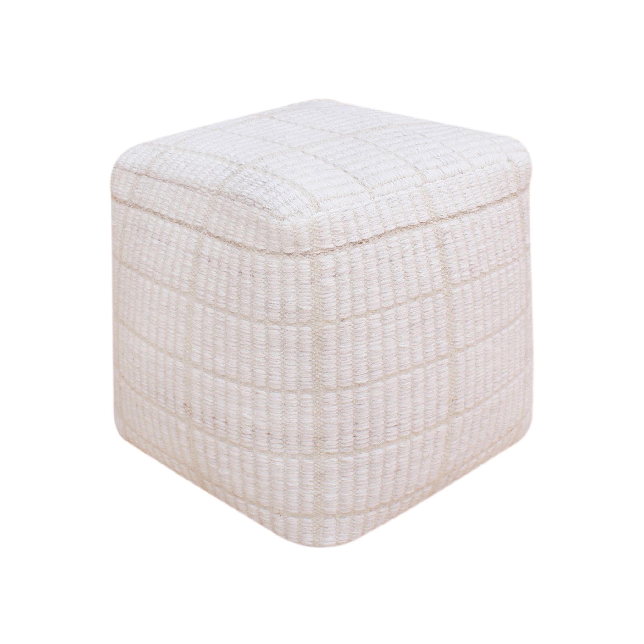 TESSA - pouf in lana avorio con decoro 40 x 40