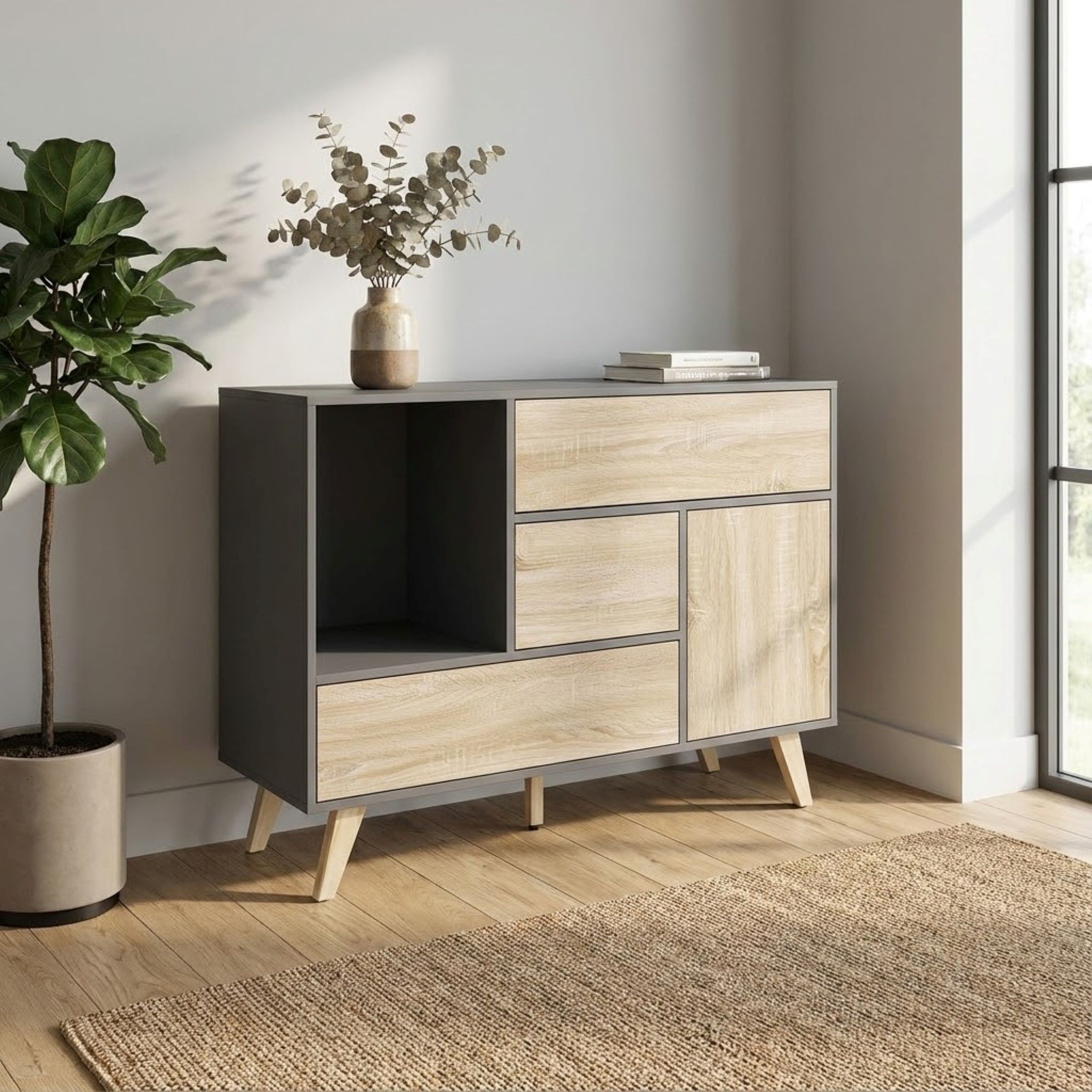 TETLIS - madia moderna con tre cassetti e un'anta