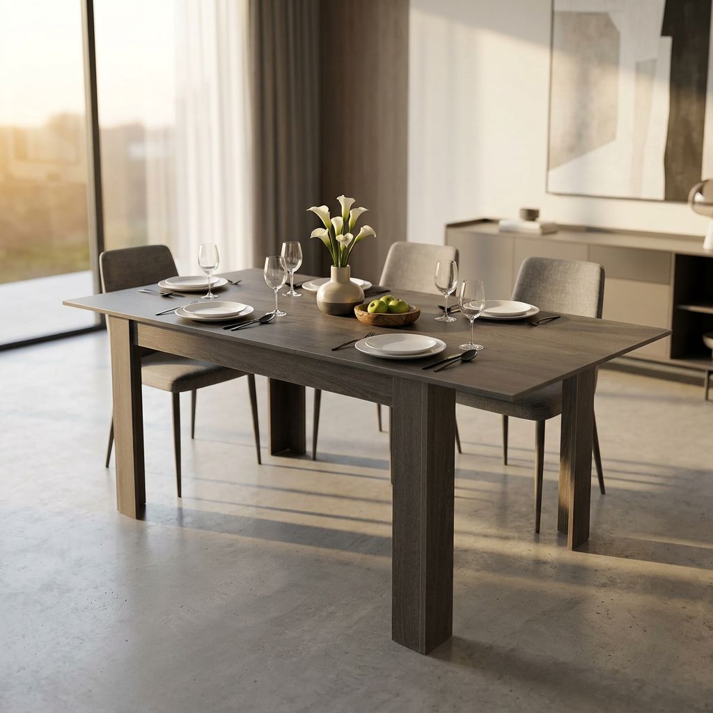 Il tavolo da pranzo allungabile è disponibile nelle colorazioni bianco, antracite effetto legno, naturale effetto legno, grigio effetto cemento e naturale con venature. Grazie al suo design versatile e alla sua capacità di estensione, si adatta a qualsiasi ambiente, offrendo eleganza e praticità in ogni occasione.