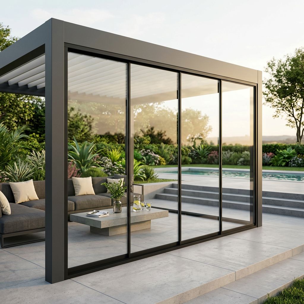 Questo pannello laterale in vetro per pergola bioclimatica 4 m offre un perfetto connubio tra luce e protezione. Disponibile in bianco o antracite, assicura un ambiente esterno sempre fruibile. Il design essenziale si integra con eleganza, creando uno spazio accogliente e moderno, ideale per momenti di relax in qualsiasi stagione.