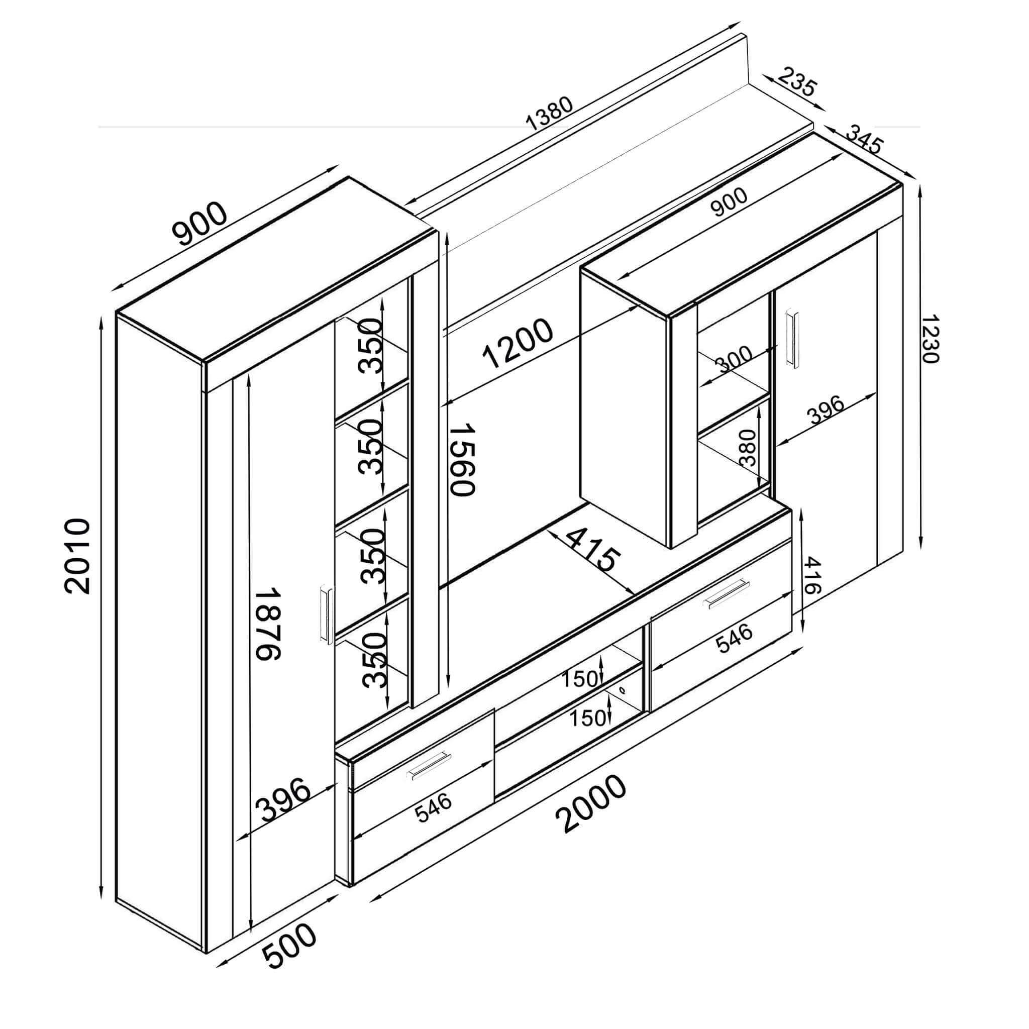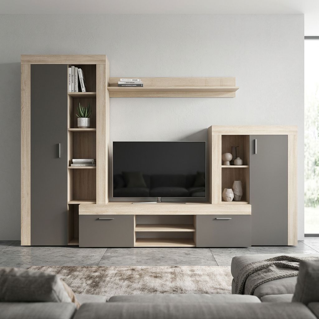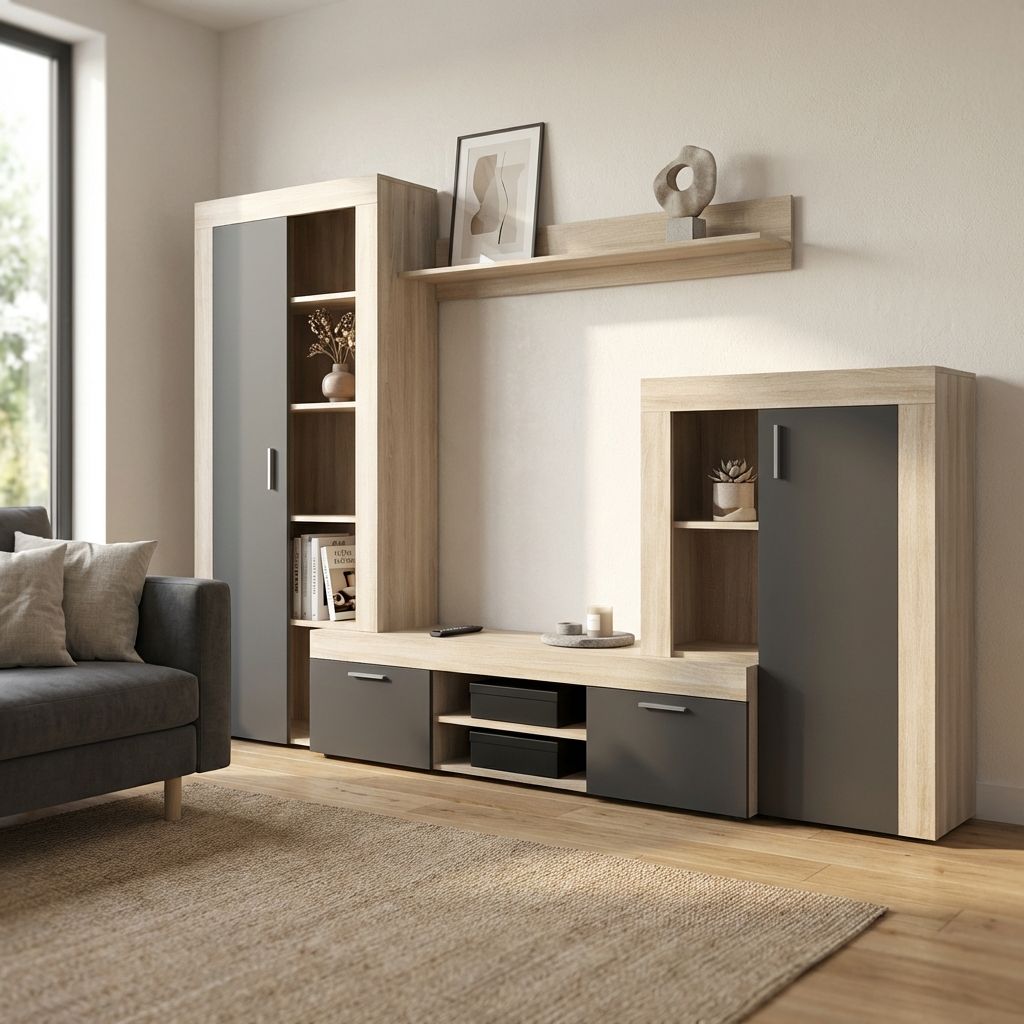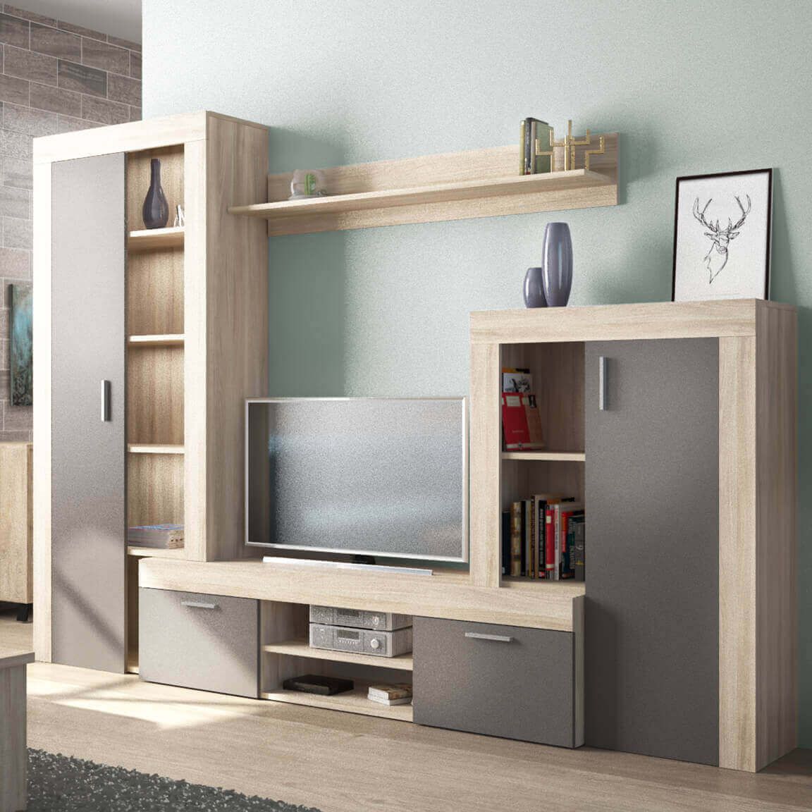La parete attrezzata TITO è disponibile in antracite, cemento e nero