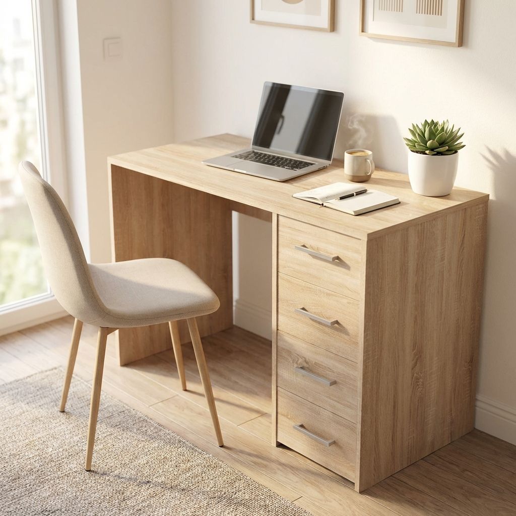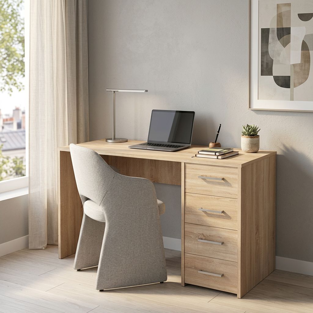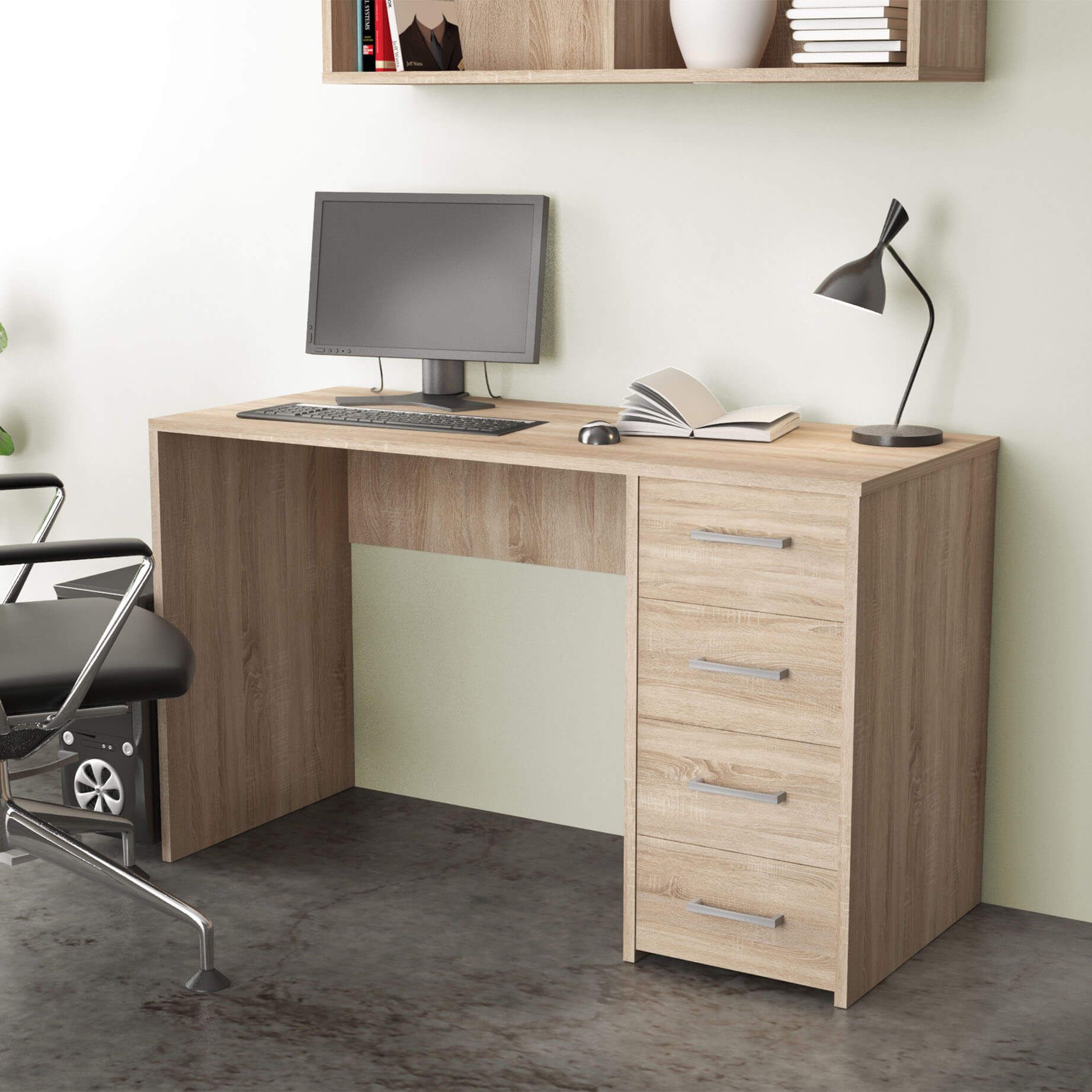 TRACE è una scrivania con cassetti disponibile in colore bianco, cemento, rovere grigio e Marrone