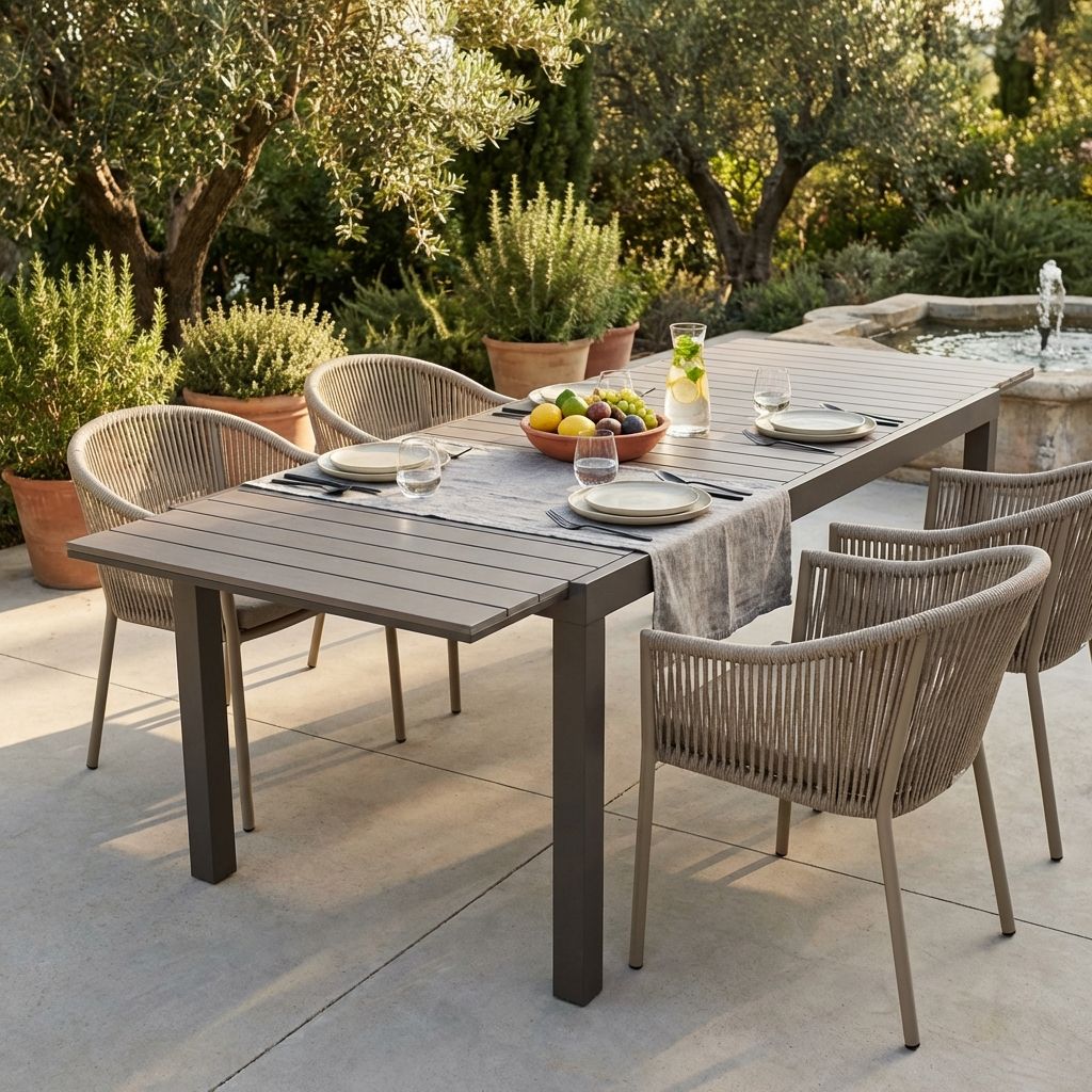 TRIUMPHUS è un tavolo da giardino disponibile in colore taupe, tortora, antracite e bianco allungabile 180x100 allungabile fino a 240 cm