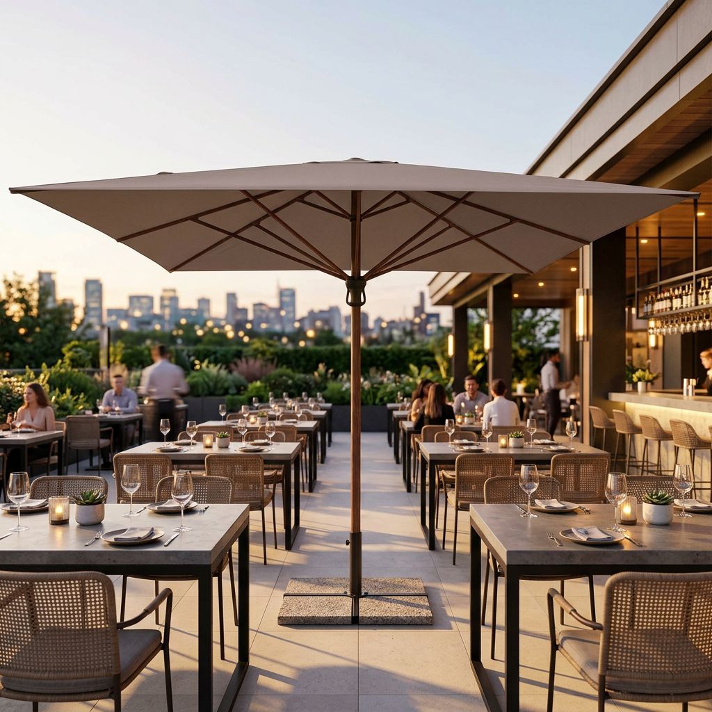 Questo ombrellone telescopico con palo centrale in alluminio effetto legno offre un’ampia copertura e una resistenza eccezionale. Il telo in nylon impermeabile da 250 g garantisce protezione dal sole e dalla pioggia, con un elevato grado di scolorimento (6). Le ampie dimensioni 5x5 m lore rendono ideale sia per uso privato che per ambienti contract.