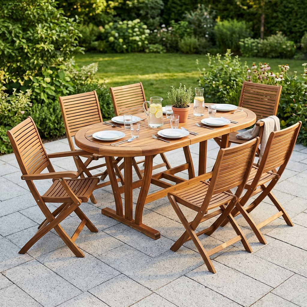 TURRIS è il set tavolo allungabile da giardino con sedie perfetto per la tua estate, ideale abbellimento per il tuo fantastico giardino. Il suo design moderno e minimal è perfetto per creare un'ambiente esterno di stile, la sua struttura in legno massello di acacia è fatta apposta per l'uso all'esterno e per la resistenza alle intemperie, mantenendo una qualità premium di prima categoria. Facile da pulire e da manutentare TURRIS ha anche il piano allungabile in modo tale da dare spazio in più ai tuoi ospiti. Le sedie sono pieghevoli in modo tale da darti una praticità d'uso, spostamento e stoccaggio senza paragoni. TURRIS grazie al suo stile in legno naturale è perfetto per arricchire il tuo giardino, gazebo, portico o terrazzo, ma ideale anche per il tuo ristorante, pub o bar.