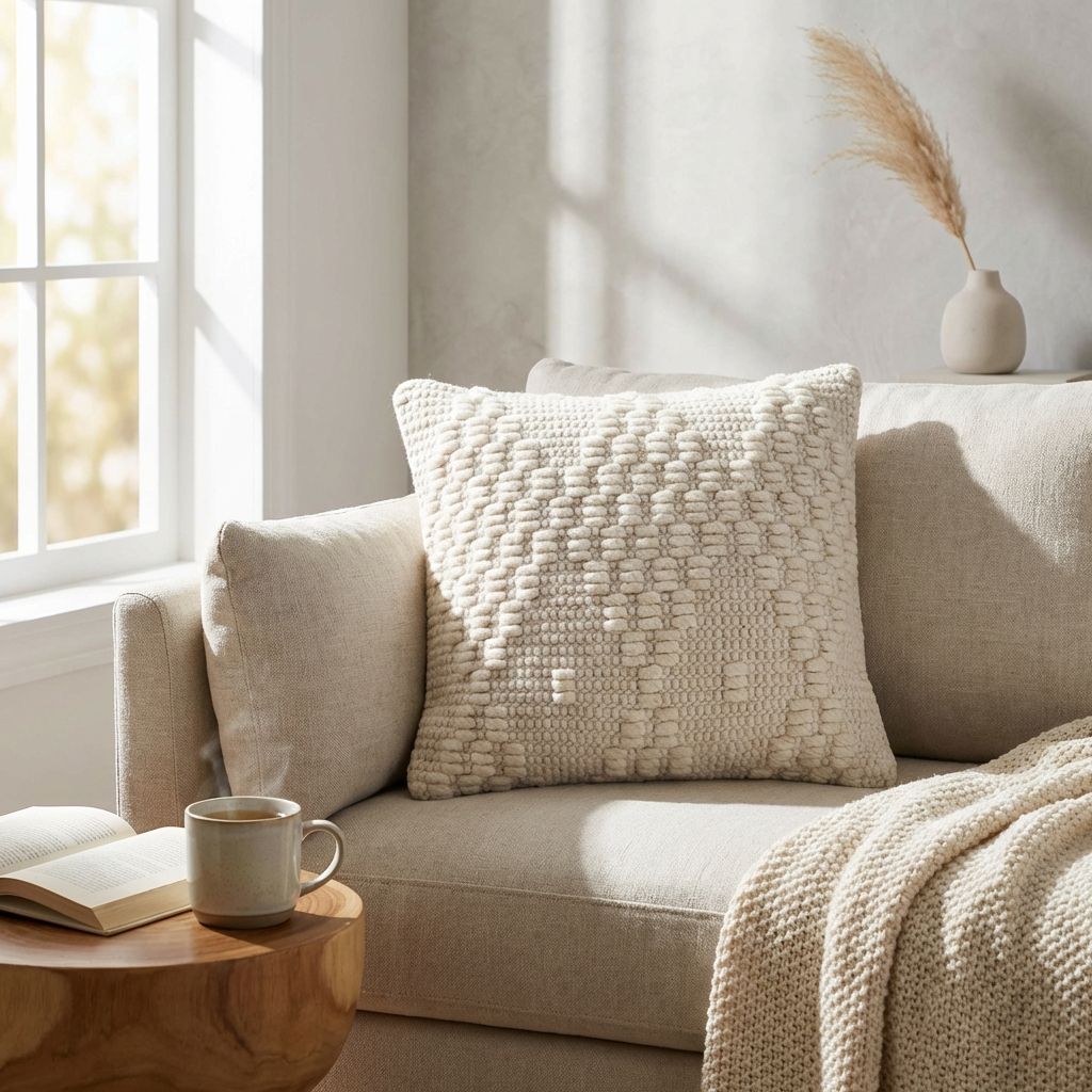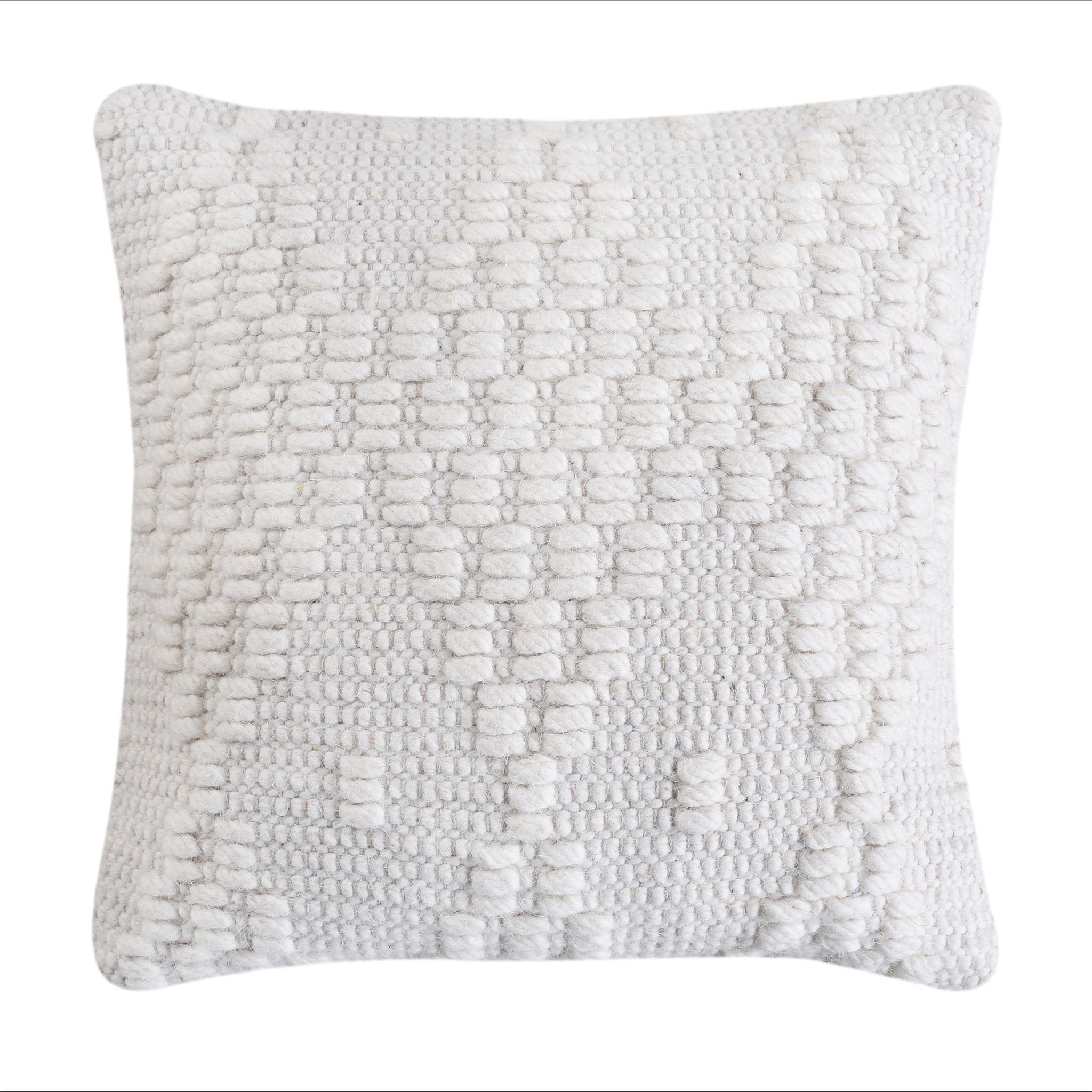 Cuscino decorativo con federa in lana, caratterizzato da texture materiche e lavorazioni in rilievo. Aggiunge un tocco di calore e personalità a divani, poltrone e letti. Il design naturale e neutro lo rende ideale per ogni ambiente.