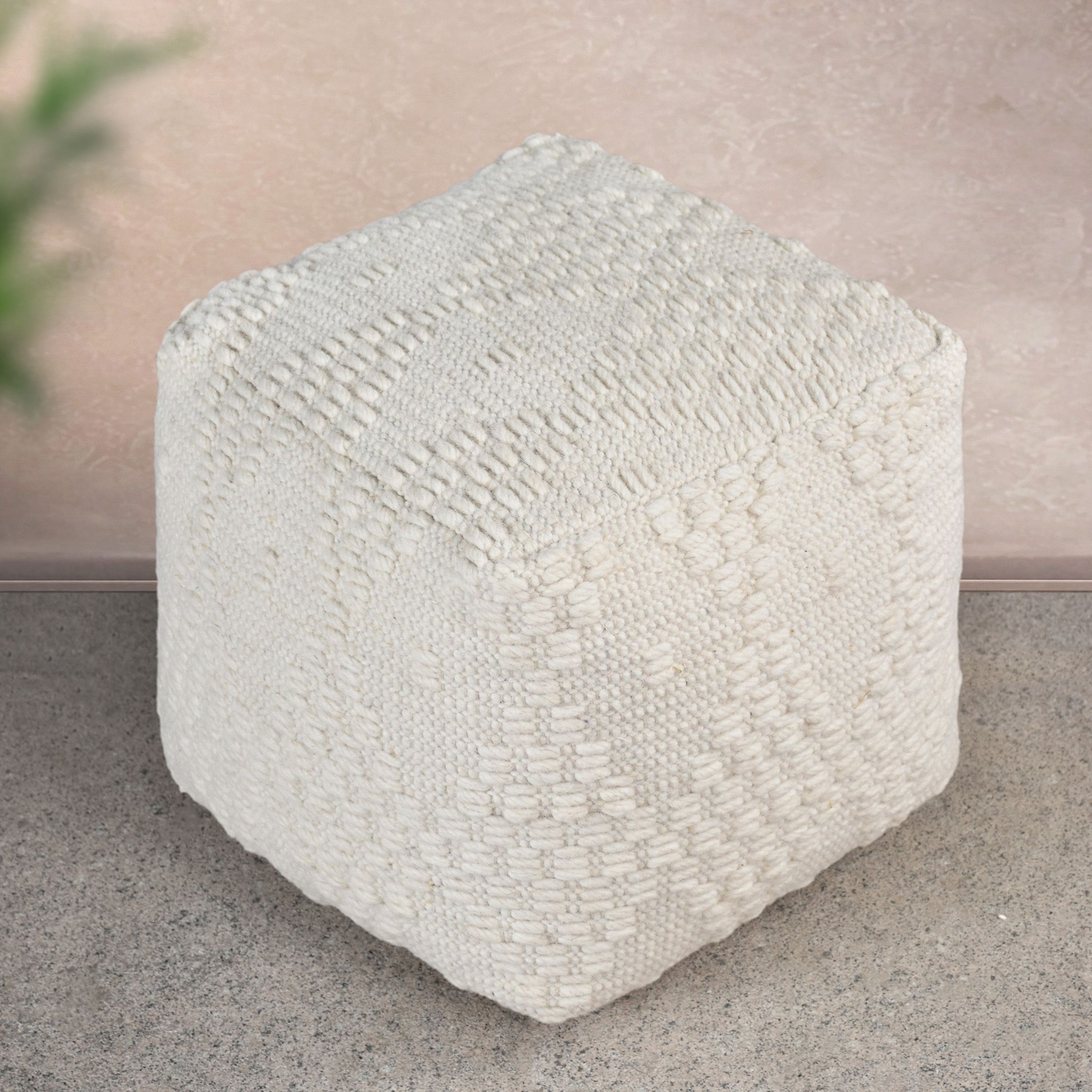 Pouf decorativo con copertura in materiali naturali, caratterizzato da una texture materica e da lavorazioni in rilievo. Versatile e raffinato, è ideale come seduta occasionale o complemento d’arredo. Il design naturale lo rende adatto a diversi stili d'arredo