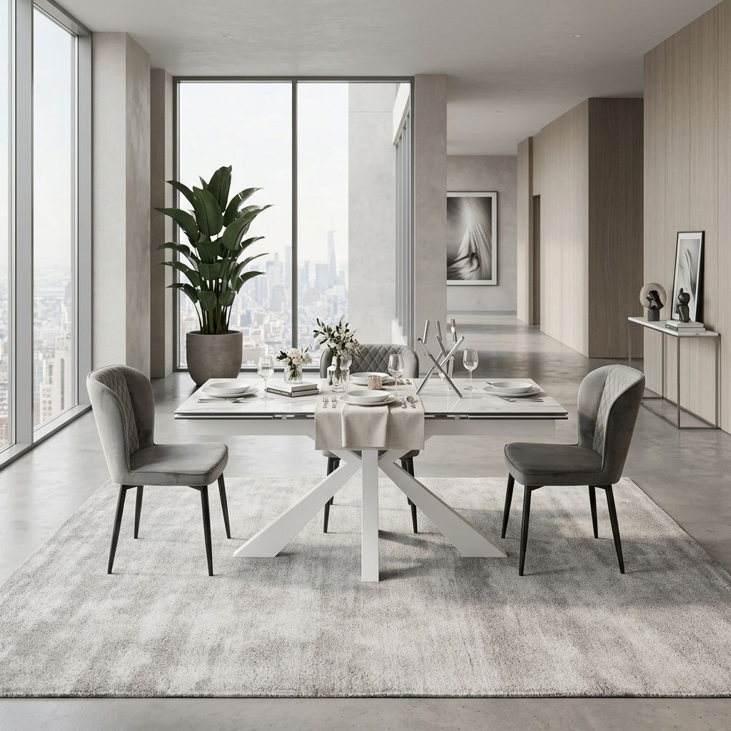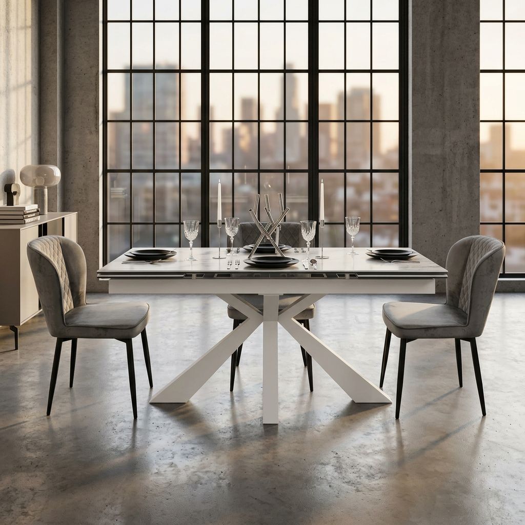 Venus è un tavolo da pranzo allungabile in metallo bianco, perfetto per ogni ambiente. Può essere esteso da 90 cm x 160 cm a 90 cm x 240 cm, adattandosi a tutte le occasioni. Leggero ma resistente, può sopportare carichi elevati. Con il suo design moderno e minimalista, si adatta a qualsiasi stile d'arredamento. Già assemblato, non richiede alcun montaggio. È facile da pulire e resistente agli agenti atmosferici. Ideale per momenti di relax con famiglia o amici, può essere abbinato a diverse sedie creando un'atmosfera accogliente e moderna. Ogni pranzo con Venus sarà un'esperienza indimenticabile.