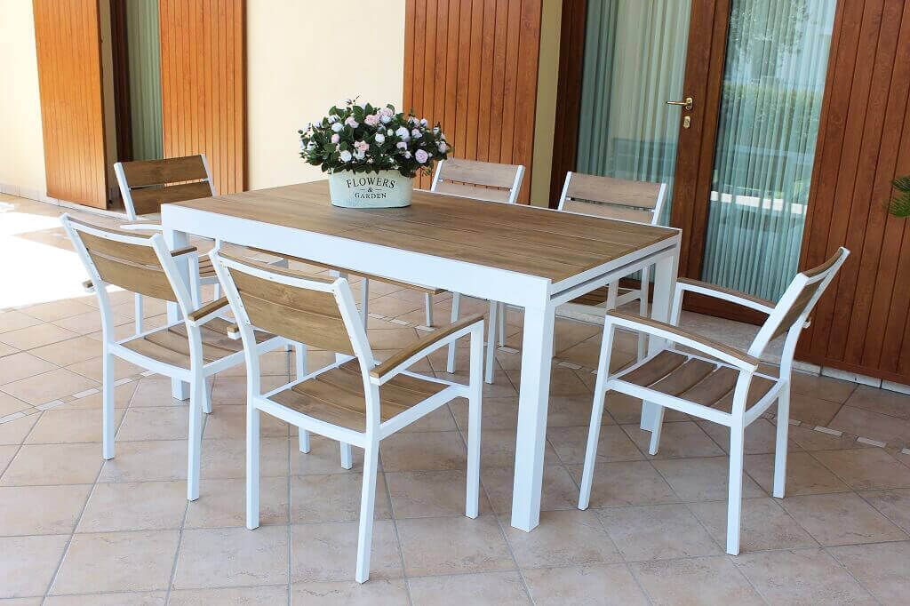 Il set VIDUUS è disponibile con 4, 6, 8, 10 poltrone in colore bianco e taupe inoltre è possibile scegliere due dimensioni del tavolo, 160x90 allungabile fino a 240 cm e 200x100 allungabile fino a 300 cm