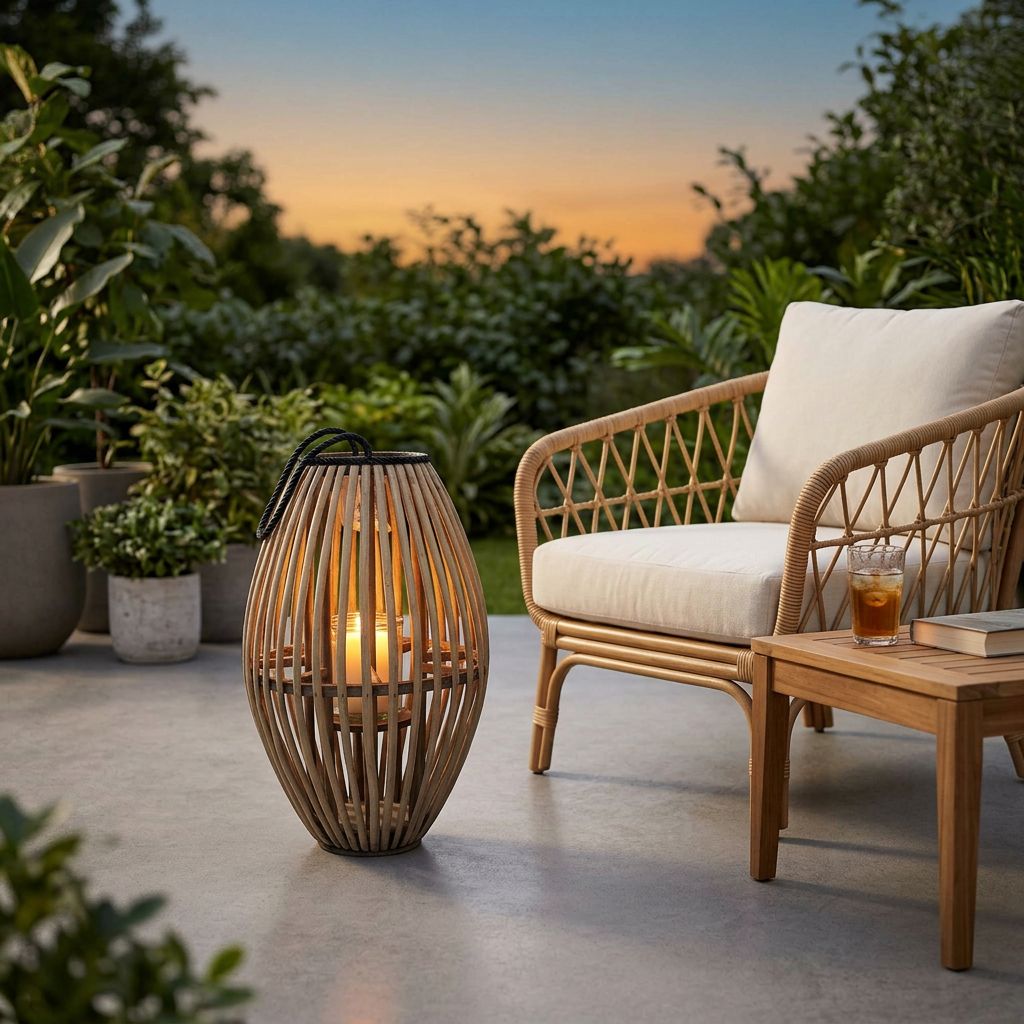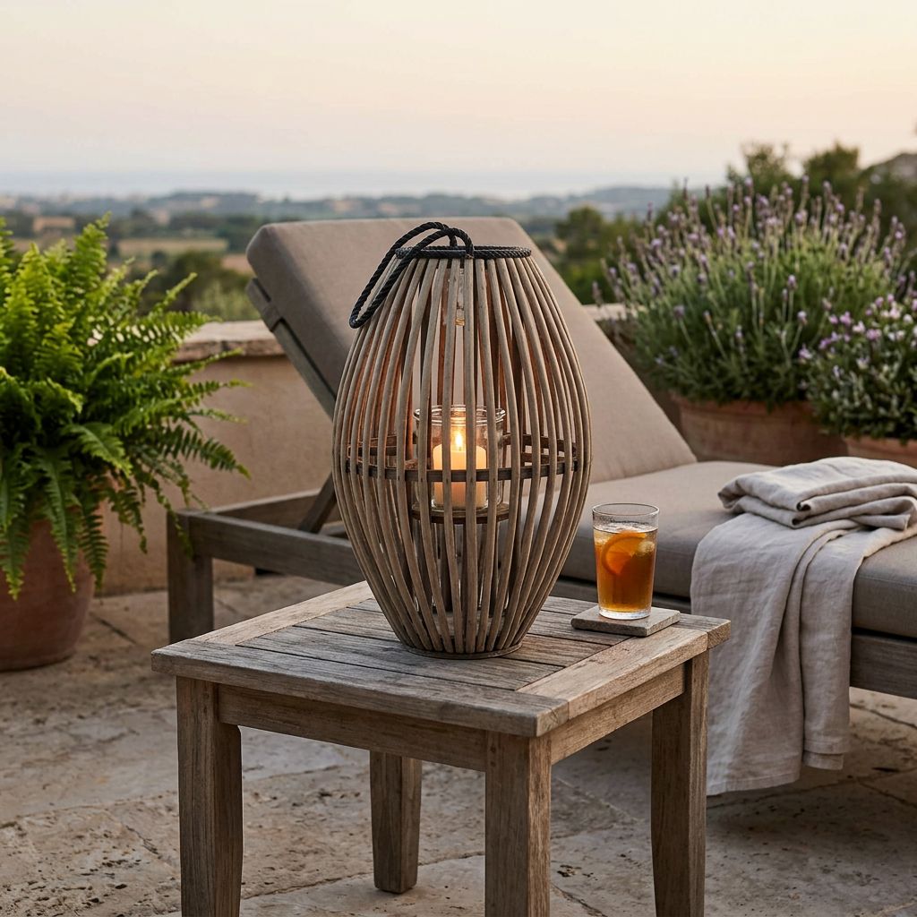 VIOLETTE è una bellissima lanterna in vimini naturale con uno stile orientale. È sicura grazie al suo inserto in vetro che protegge le candele dal vento e puoi usarla sia dentro che fuori. Puoi anche appenderla con la corda inclusa. Scegli VIOLETTE, è sempre una scelta vincente!
