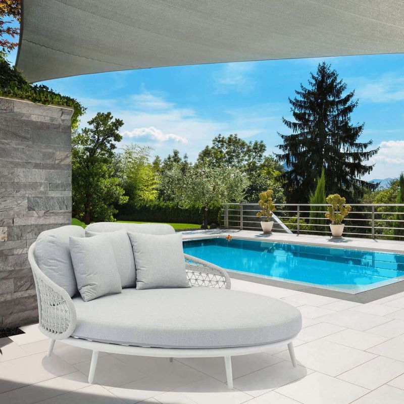 WAVEL - divano da giardino circolare in alluminio con cuscini